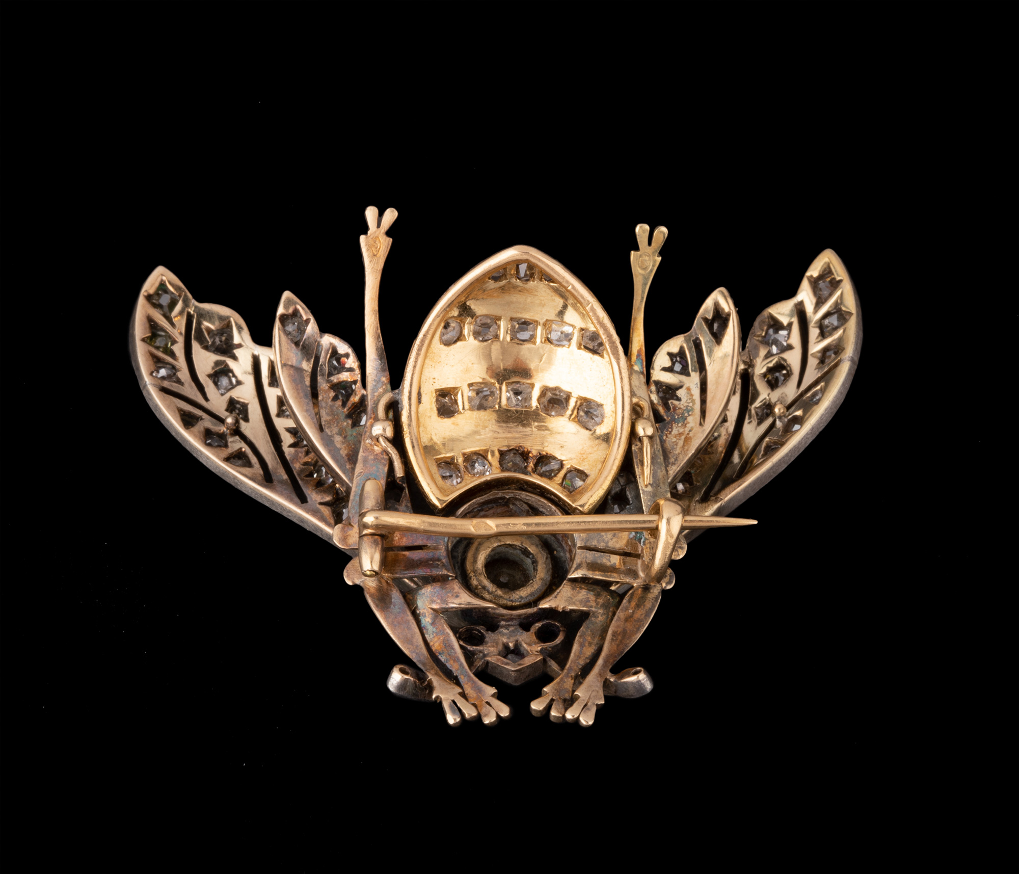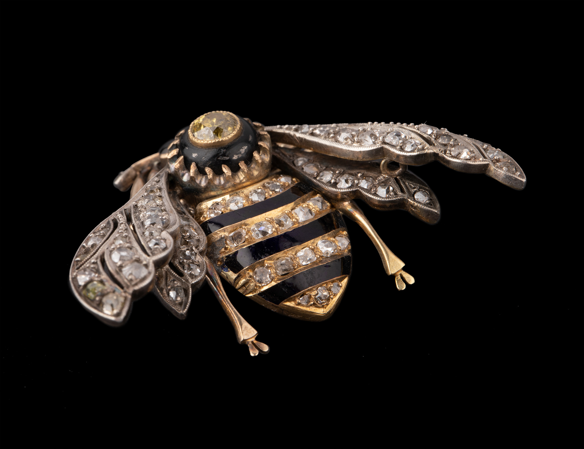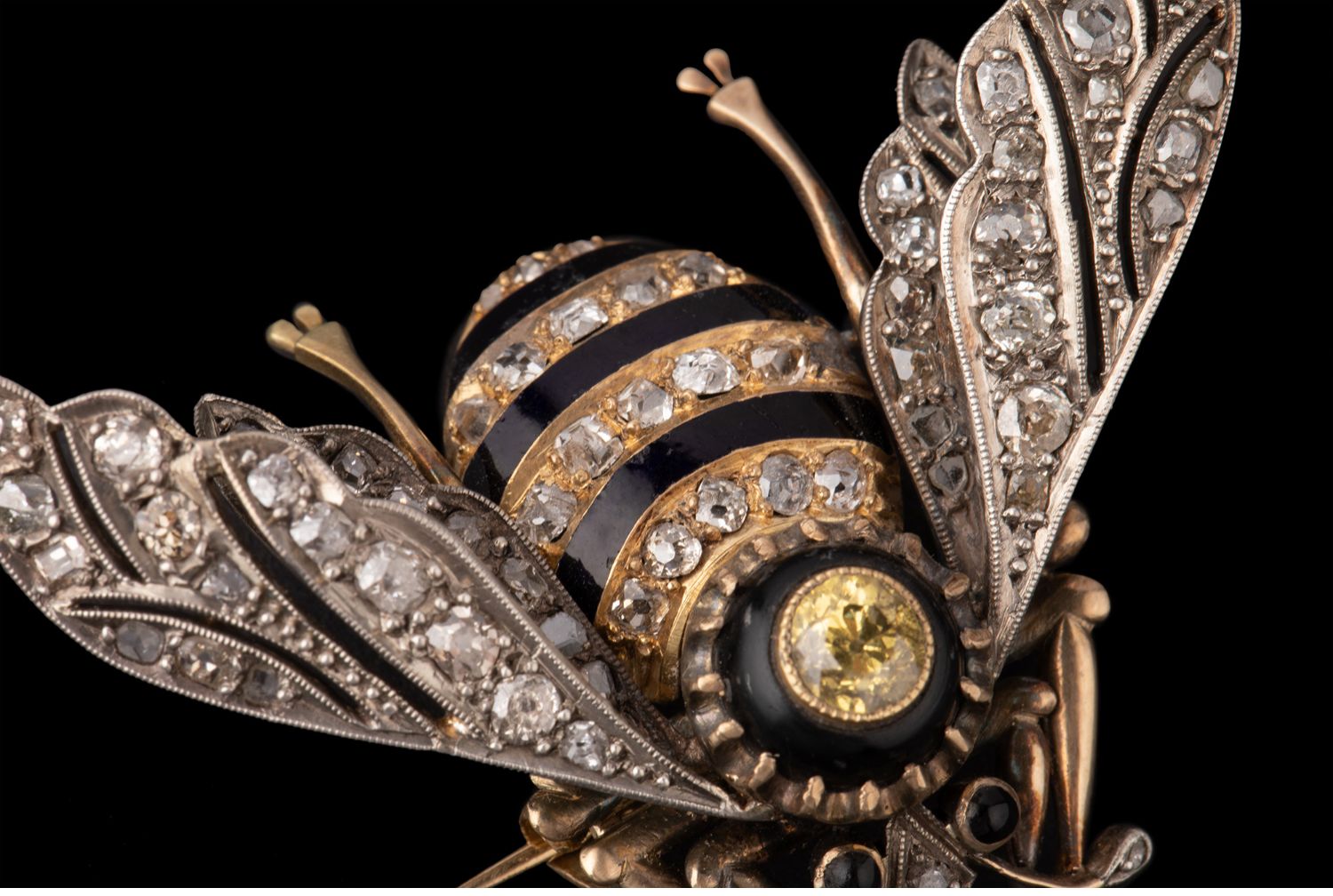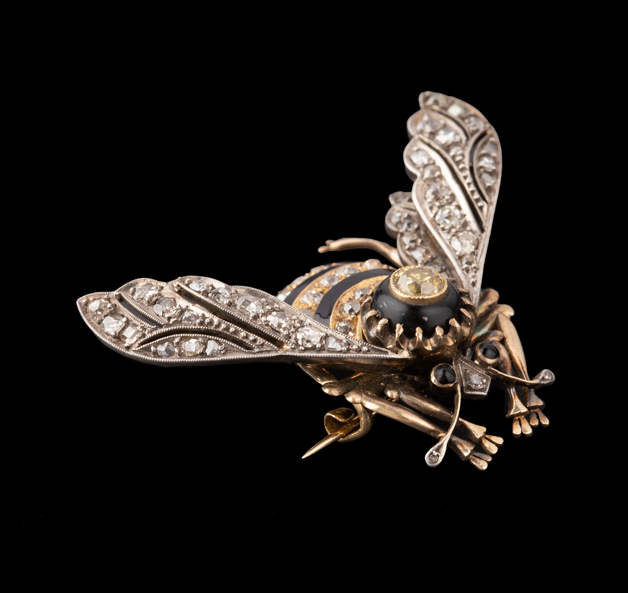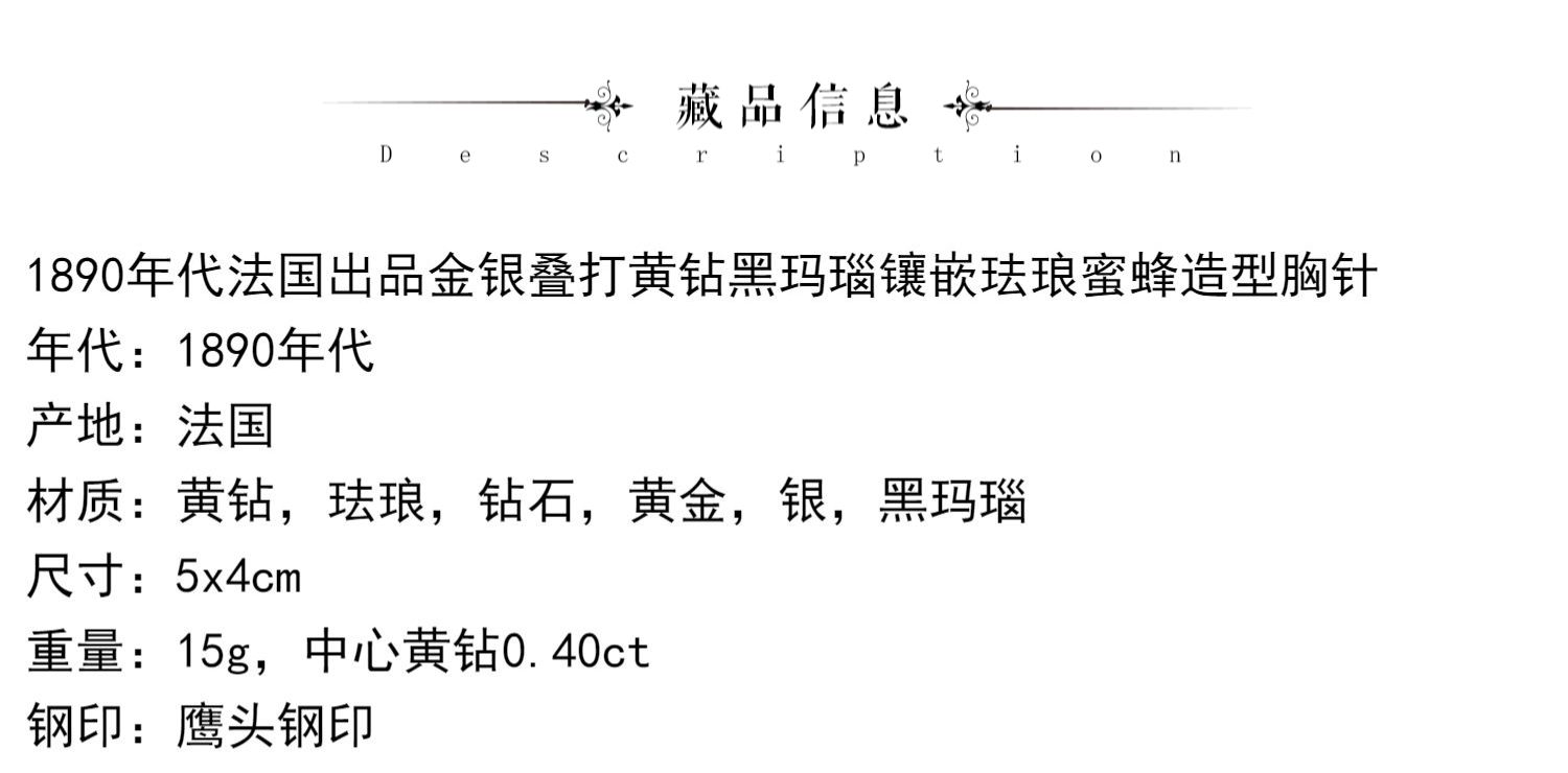 独角鹿西洋古董珠宝首饰金银叠打黄钻黑玛瑙镶嵌珐琅蜜蜂造型胸针