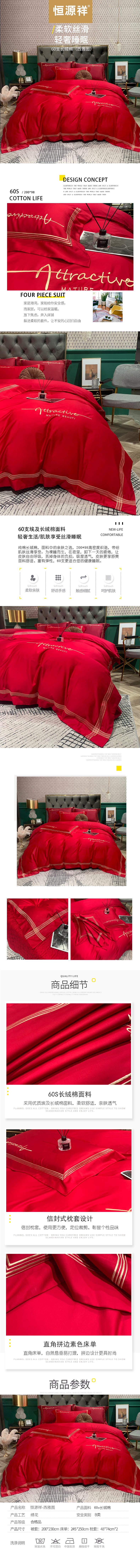 恒源祥60支长绒棉四件套(西雅图)HYXT308