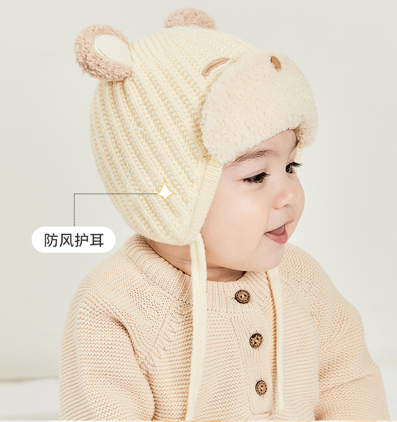 【新品上市 限时底价】贝肽斯婴儿帽子秋冬季婴幼儿男宝宝防风保暖针织帽儿童护耳毛线帽