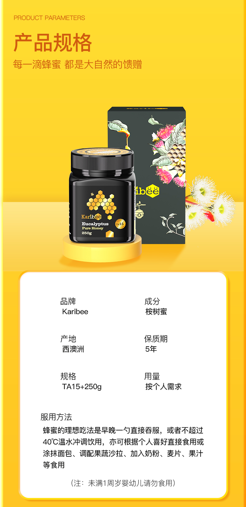 Karibee可瑞比桉树蜜TA10+ 250g澳洲原装进口