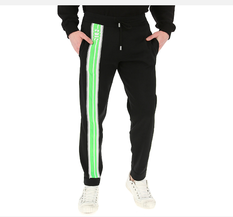 GCDS 男士绿色徽标提花棉质休闲运动裤 黑色 ASS19M030011 GREEN