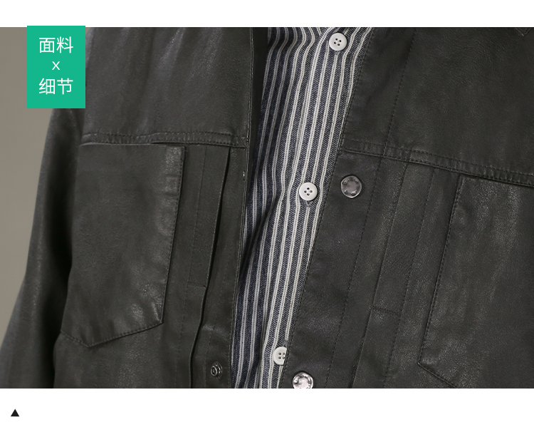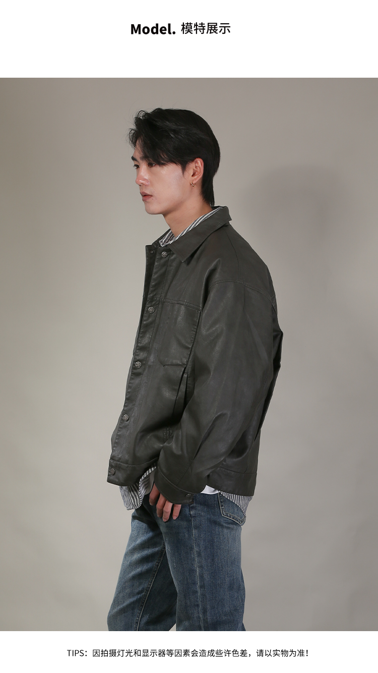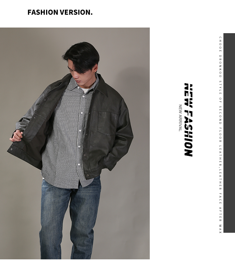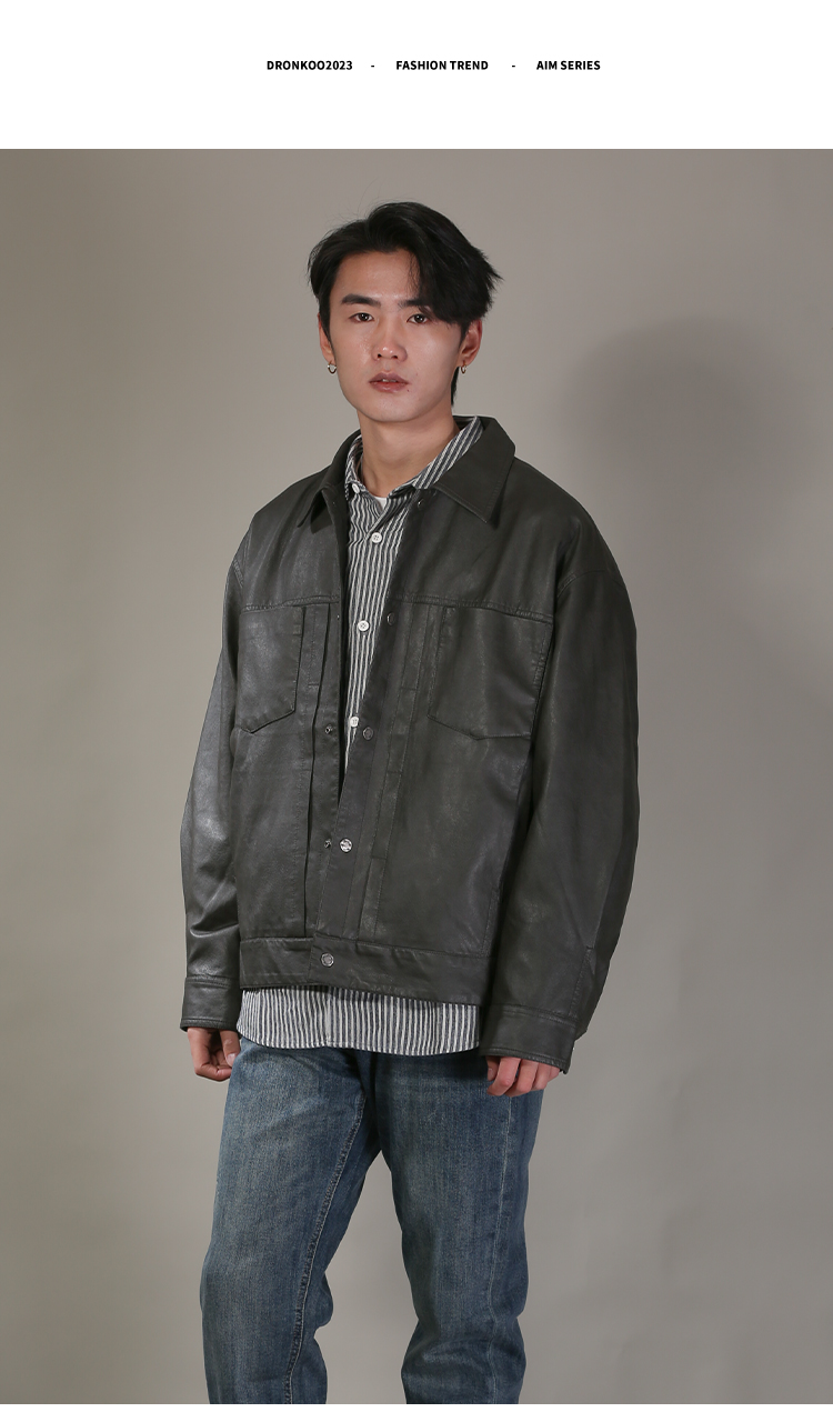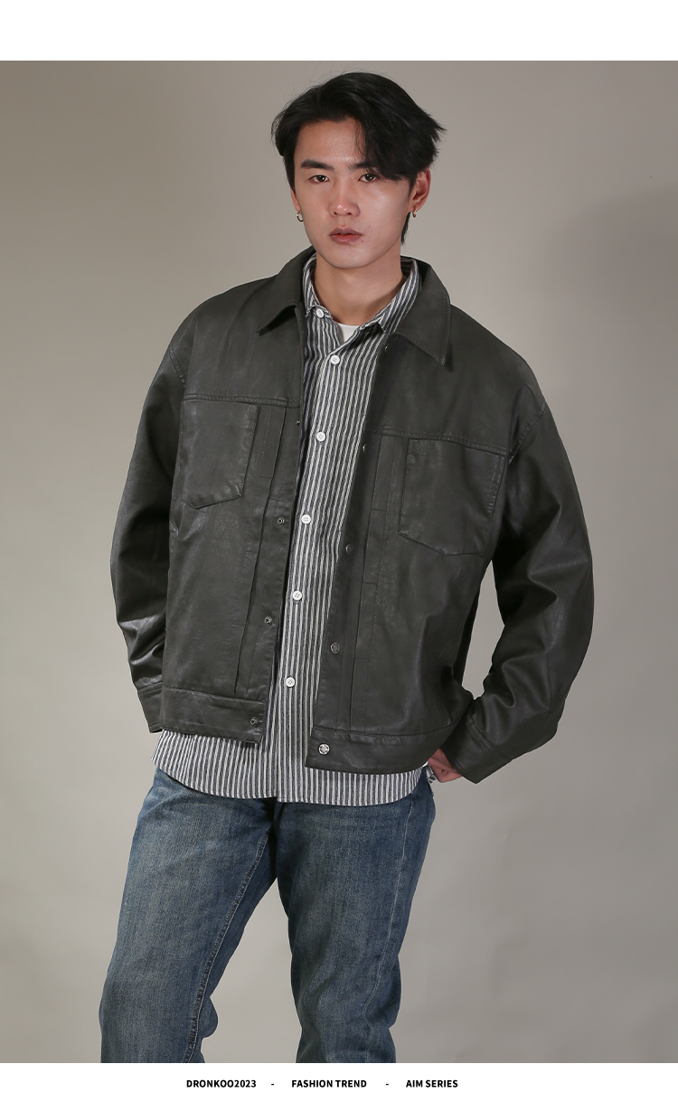 DRONKOO 2026 翻领前双贴袋门襟压褶中厚皮衣
