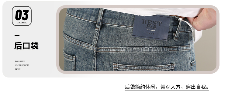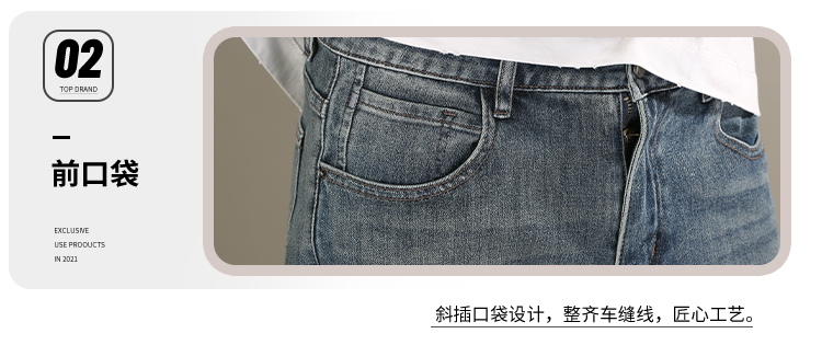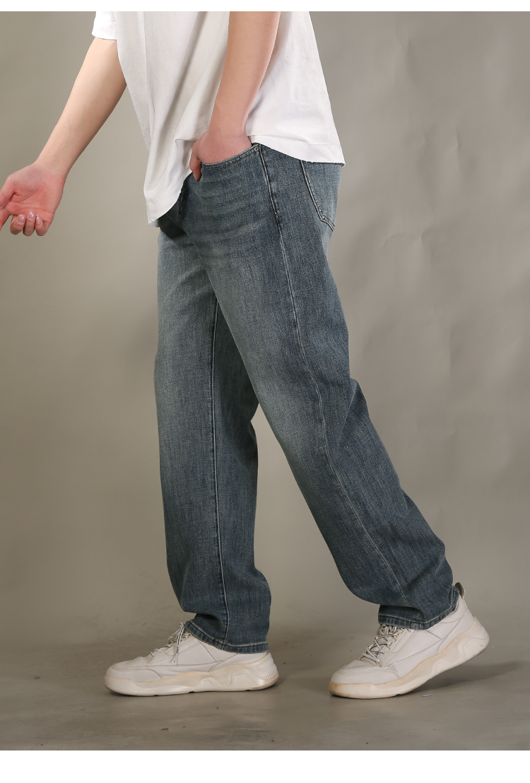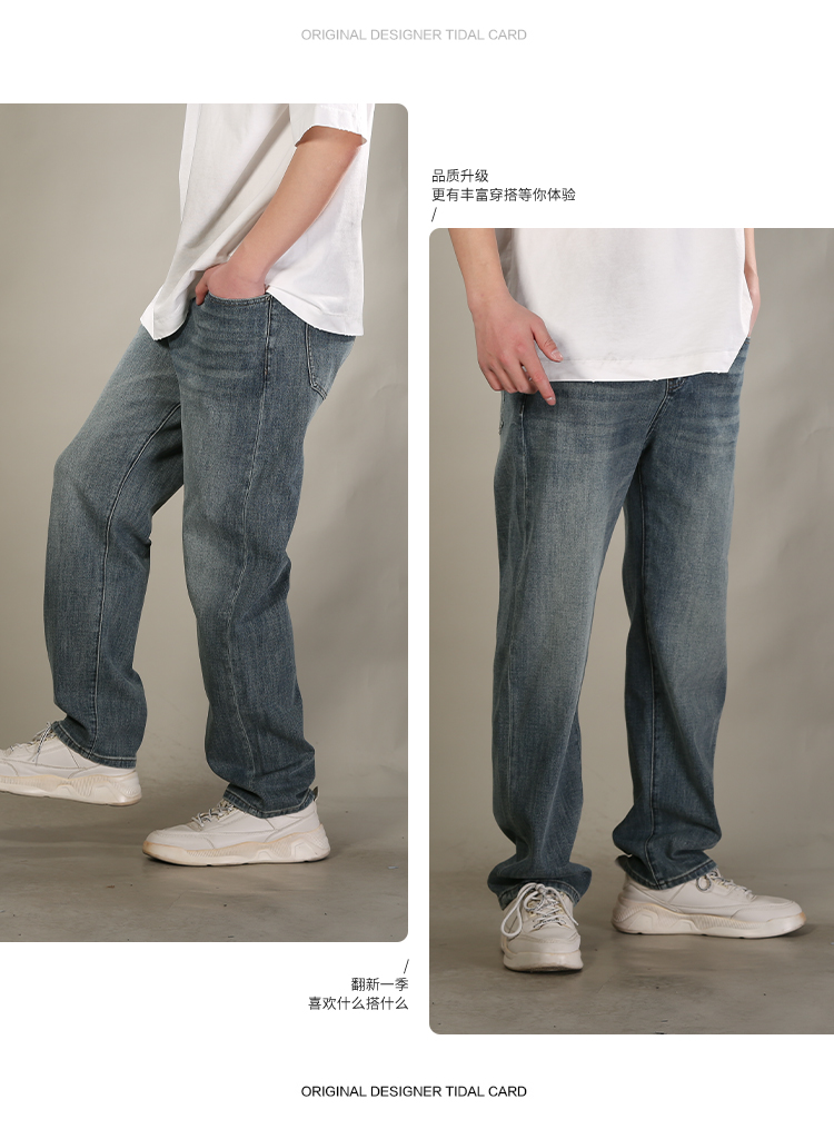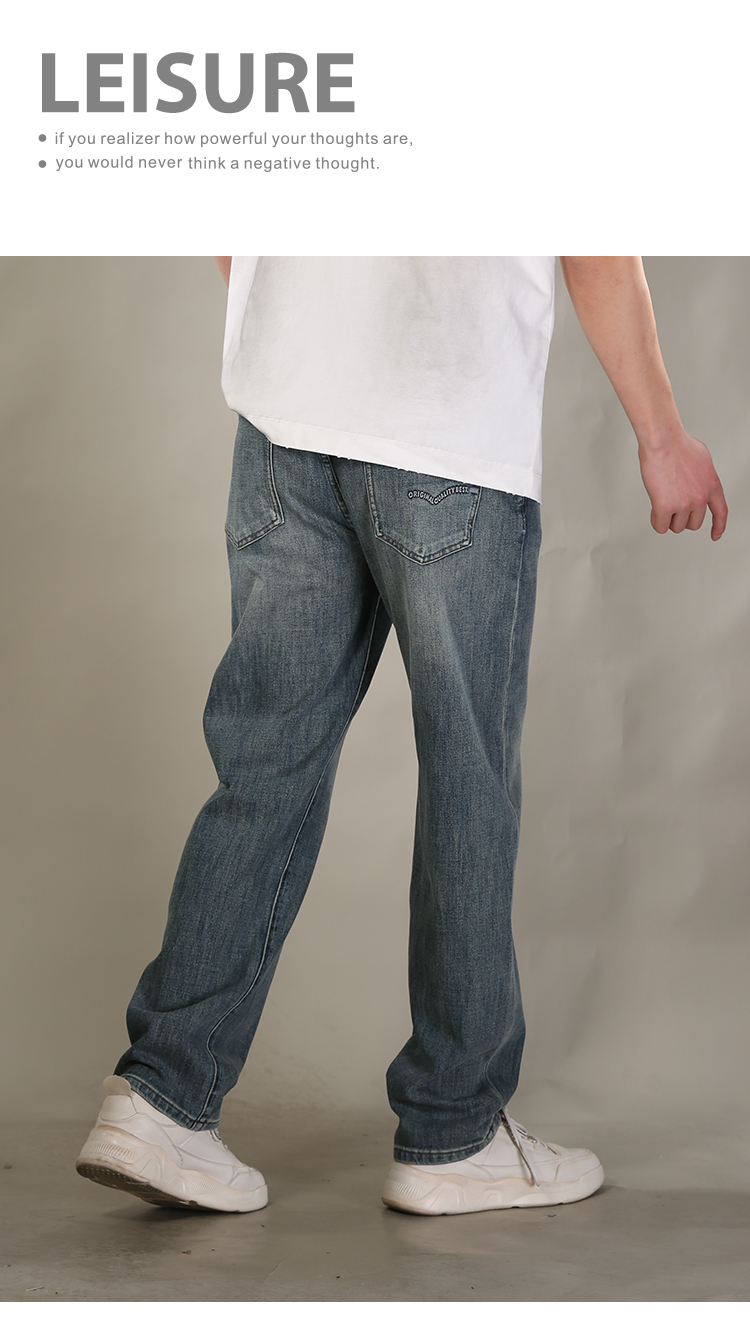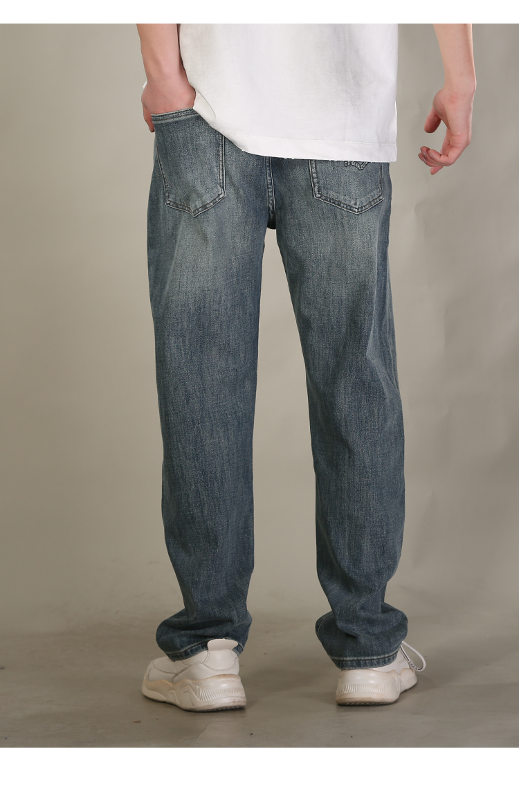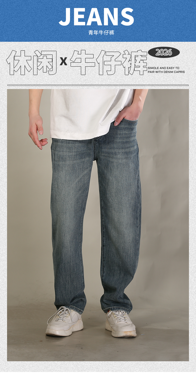 DRONKOO 2026 正常腰后口袋绣线压印字母四面弹中厚牛仔长裤