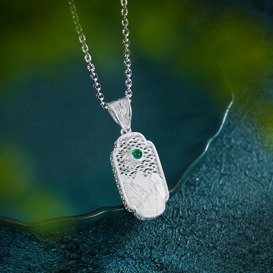 子佩集S990银【山河湘貌】小号套链【DSTL001】纯银大师工坊原创作品山水花丝项链2412