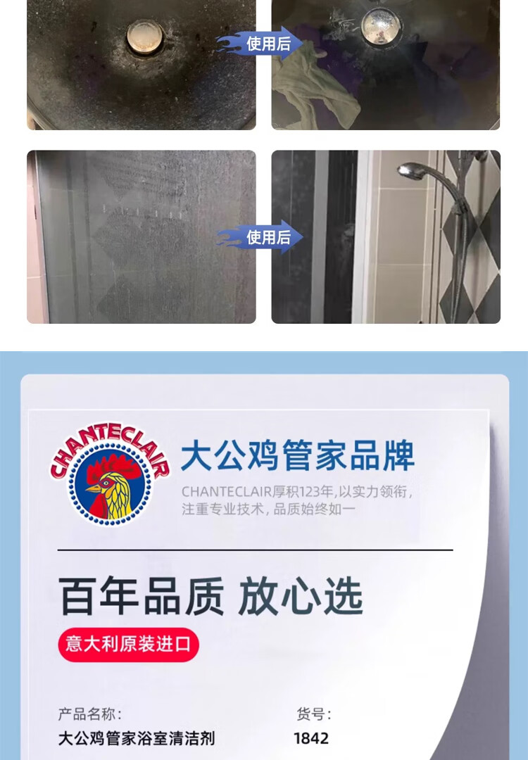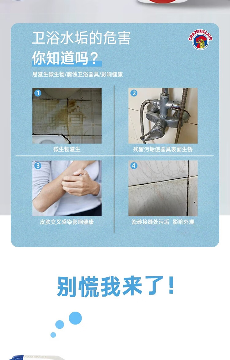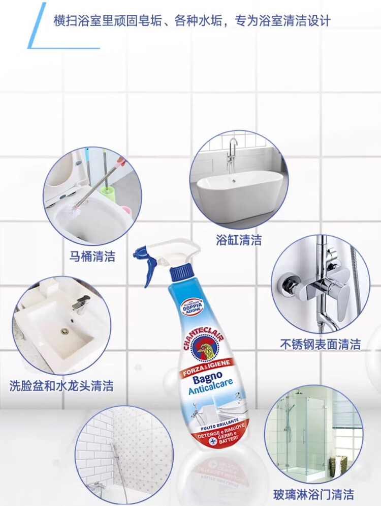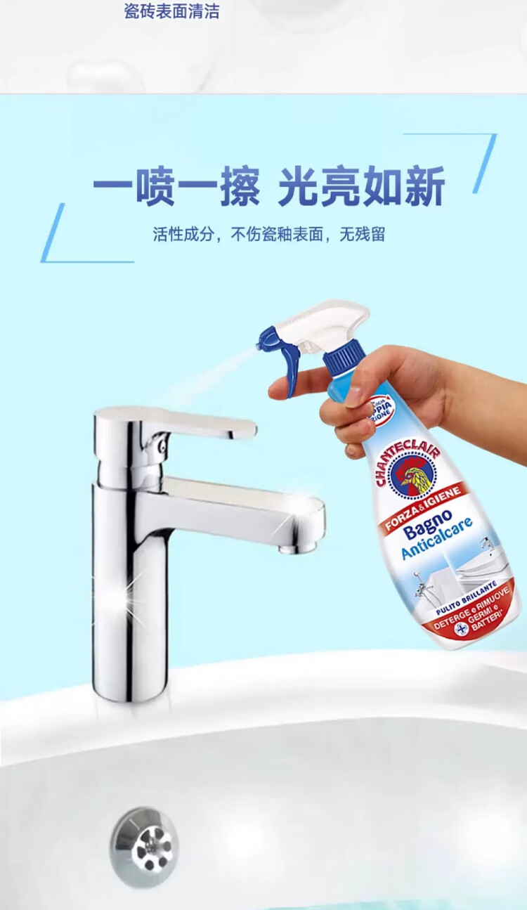CHANTECLAIR大公鸡管家浴室清洁剂 625ml 玻璃水垢不锈钢水龙头清洗剂浴缸瓷砖去污