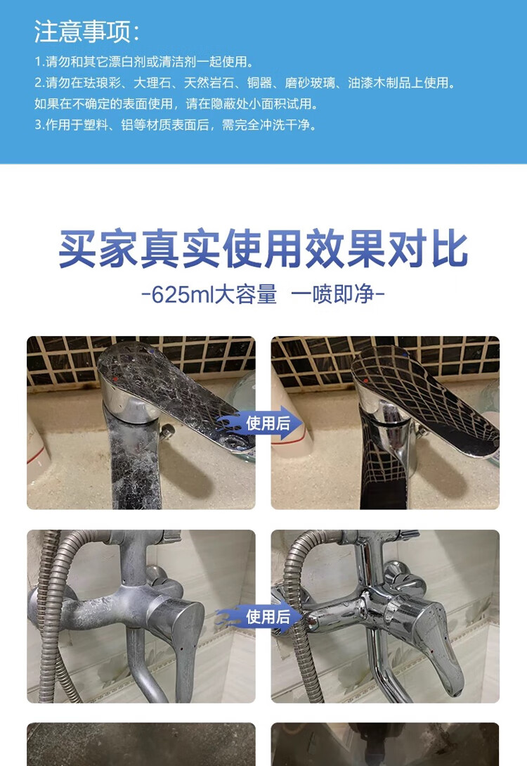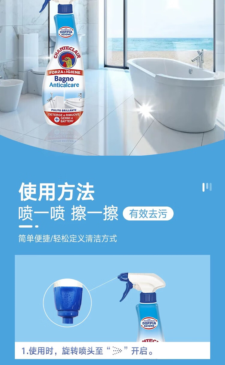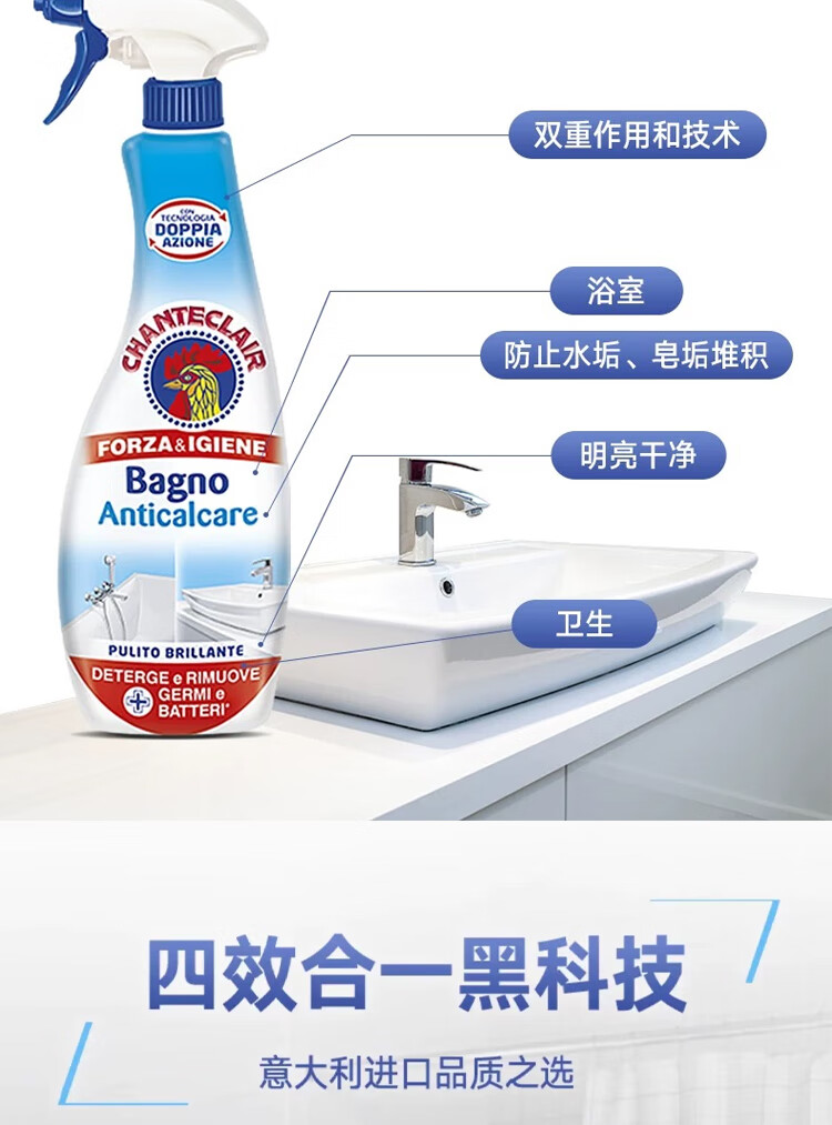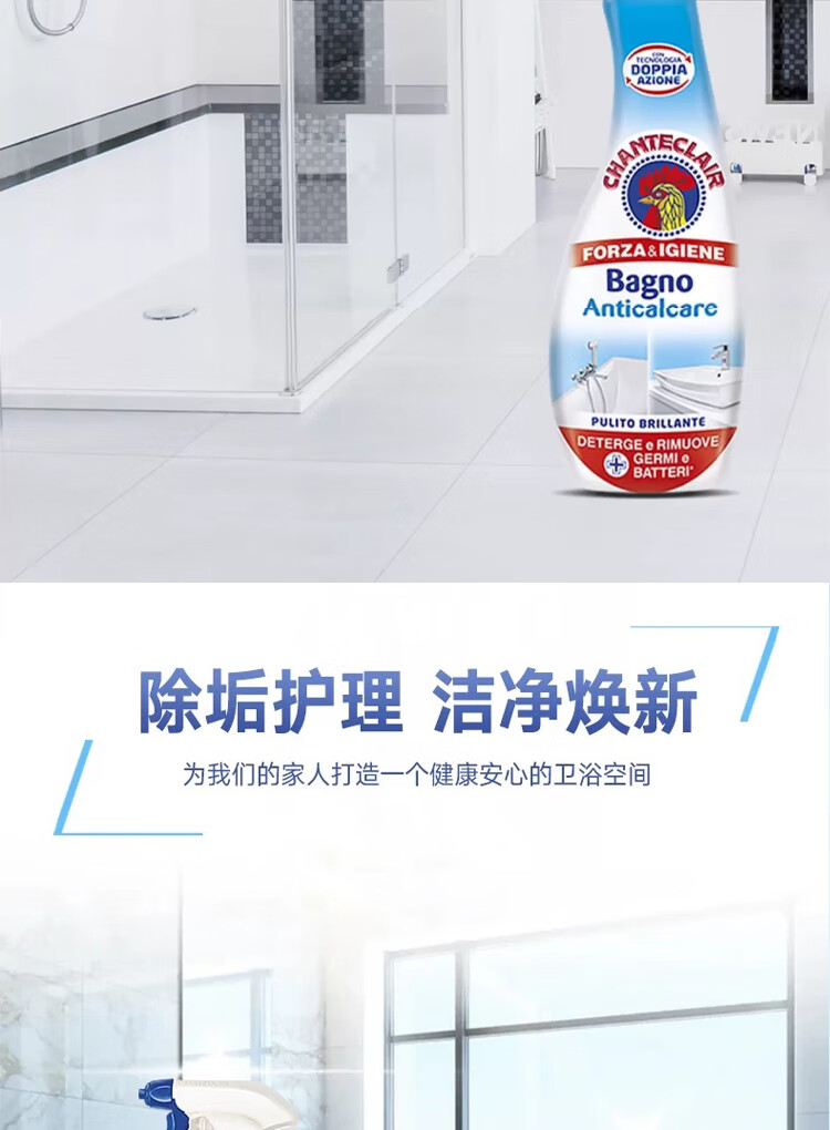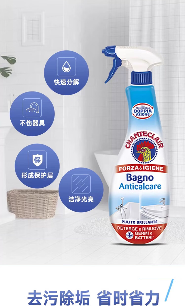 CHANTECLAIR大公鸡管家浴室清洁剂 625ml 玻璃水垢不锈钢水龙头清洗剂浴缸瓷砖去污