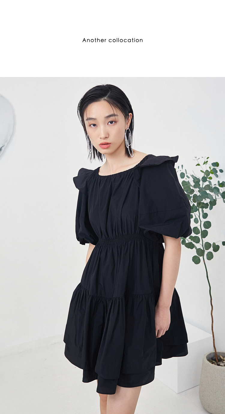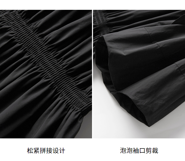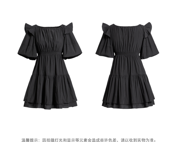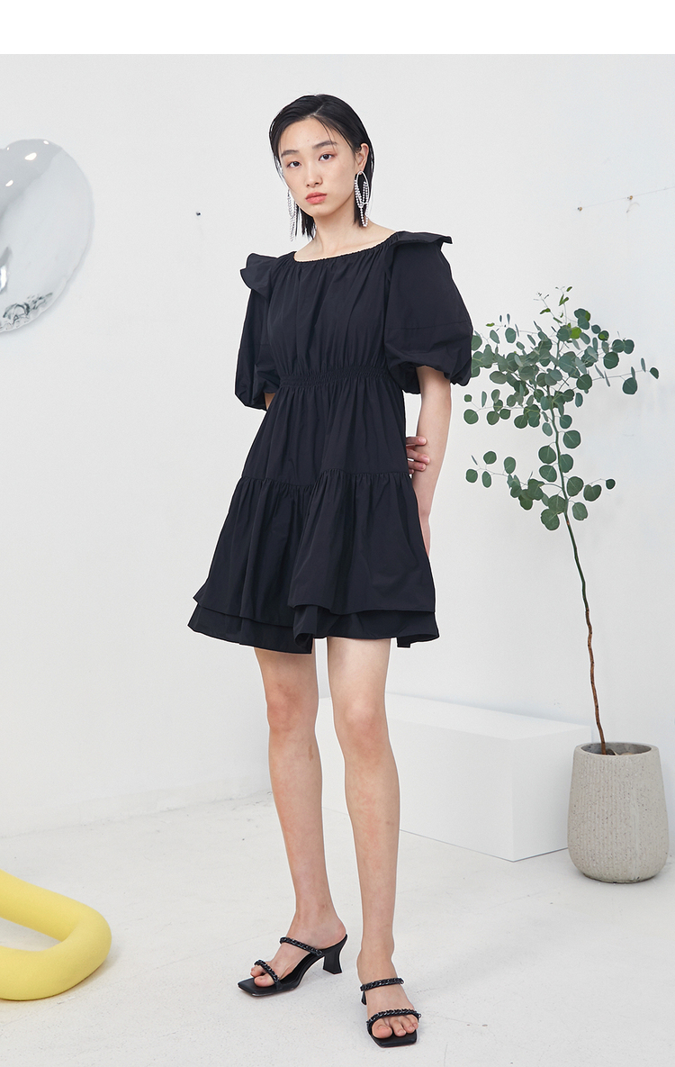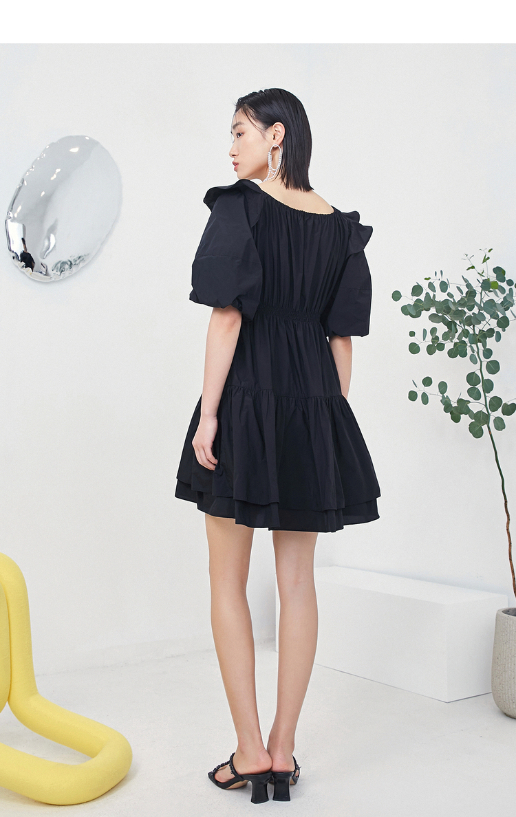 NEELLY纳俪商场同款夏季连衣裙女设计感泡泡袖A字裙收腰小黑裙N22044Y04430