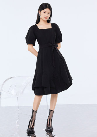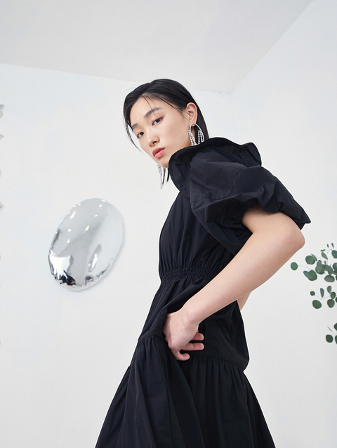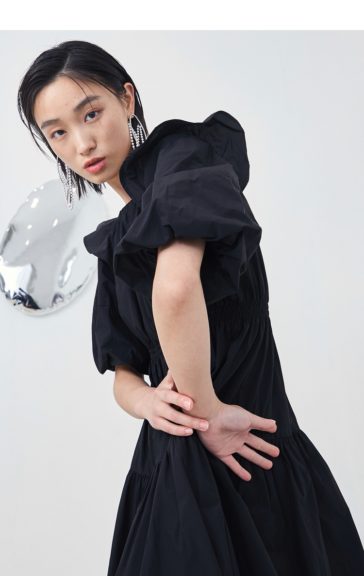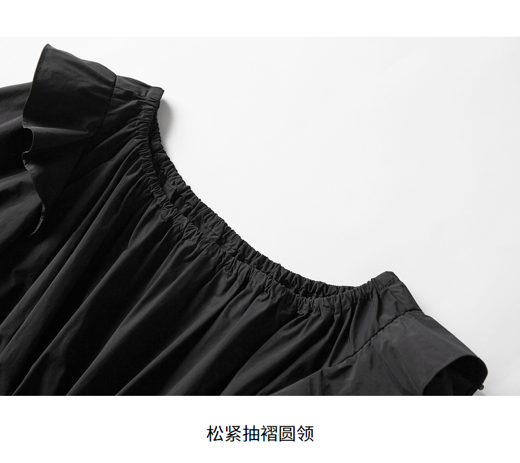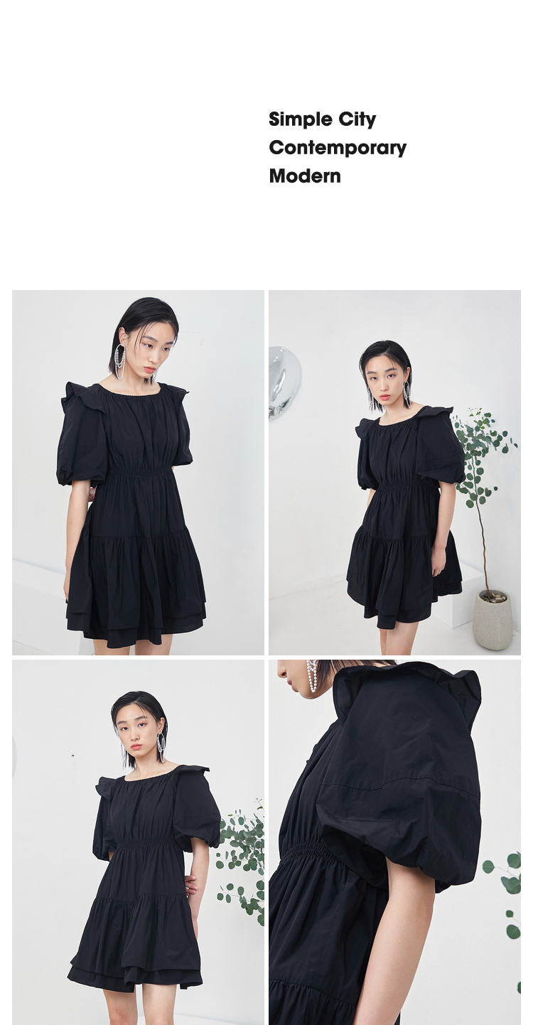 NEELLY纳俪商场同款夏季连衣裙女设计感泡泡袖A字裙收腰小黑裙N22044Y04430