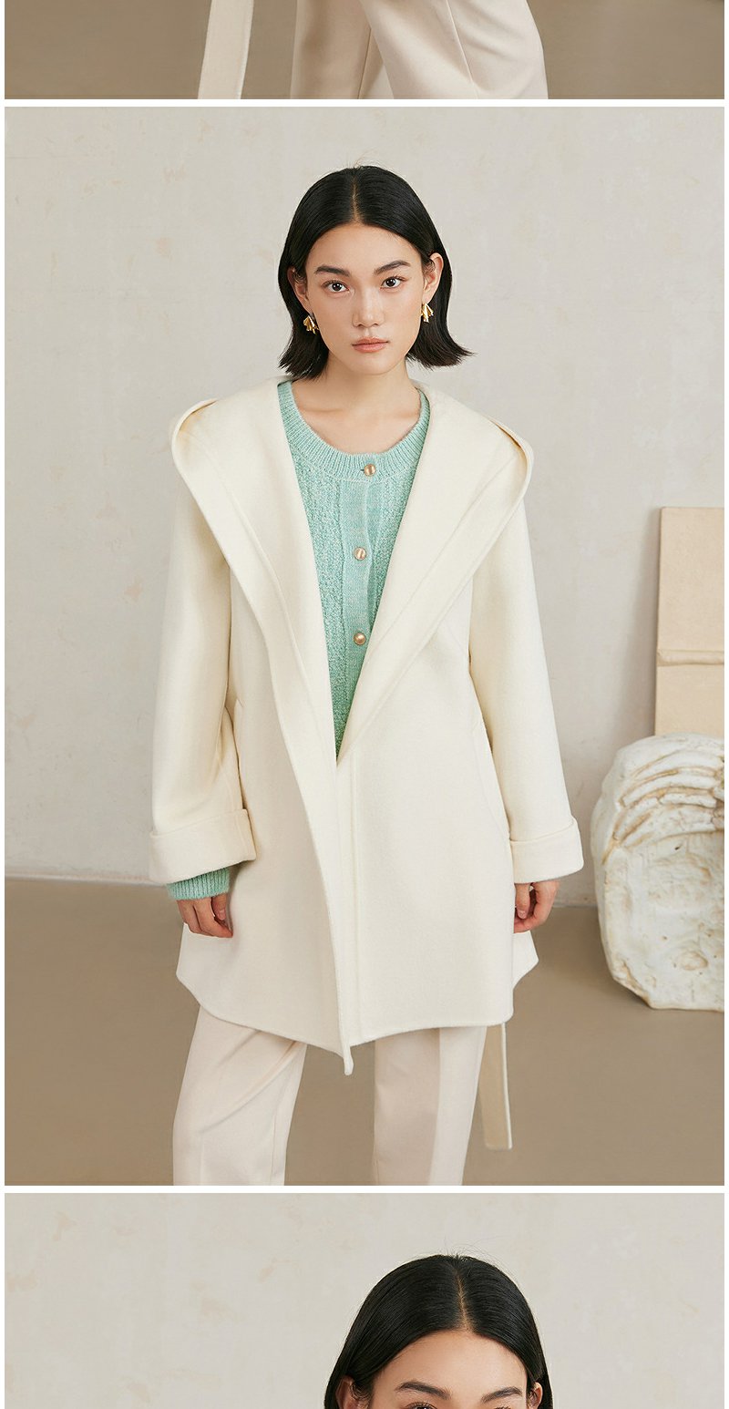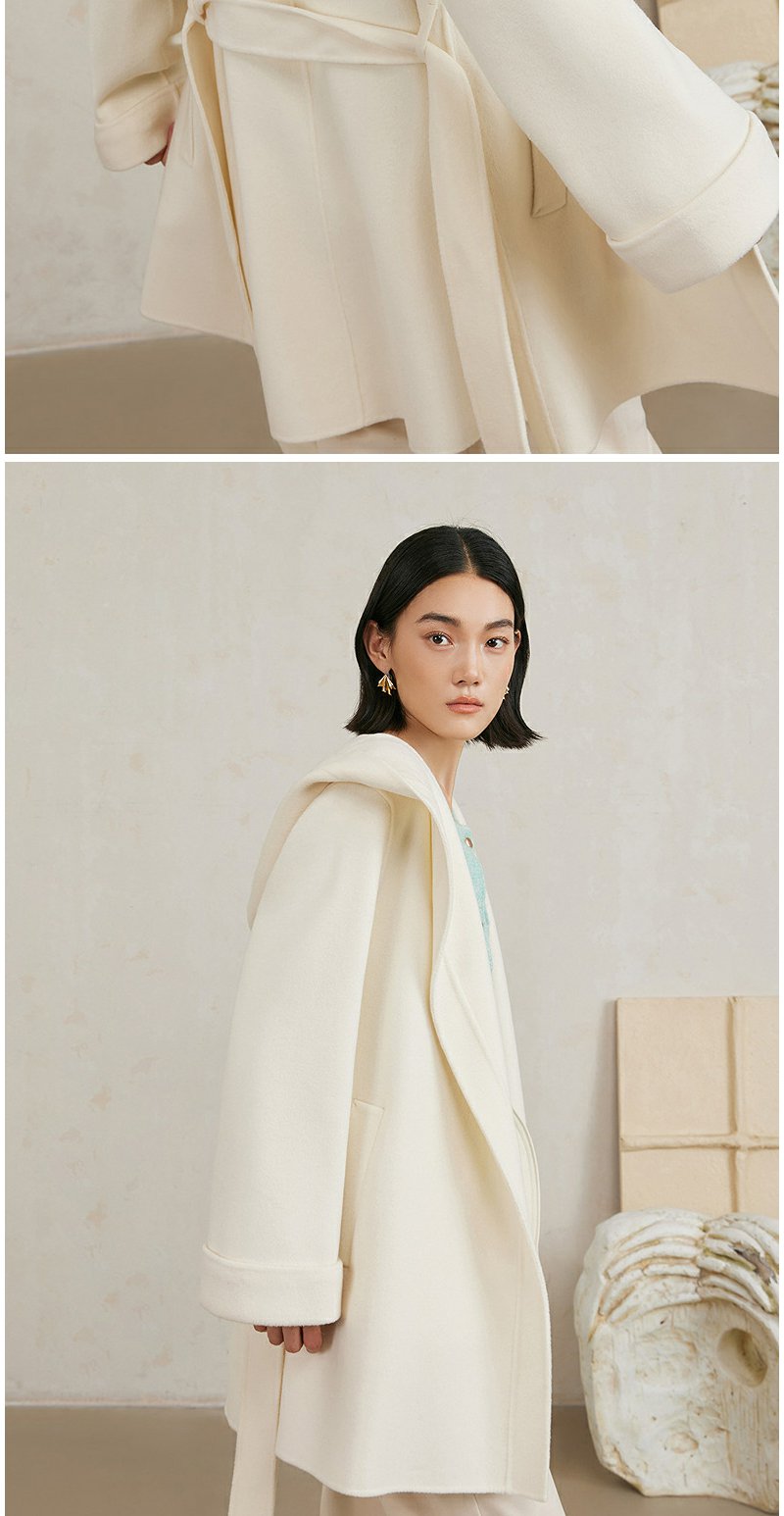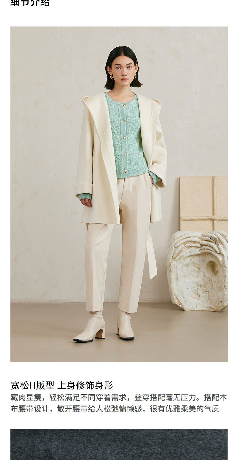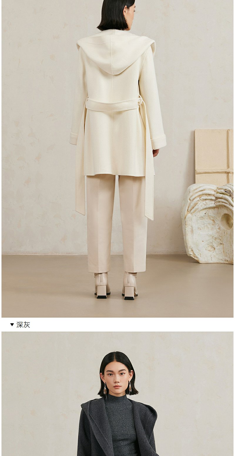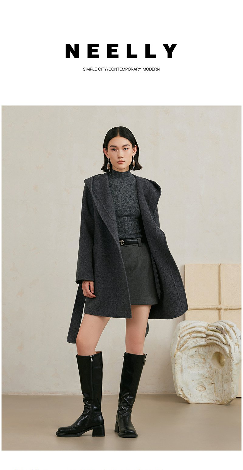 NEELLY纳俪商场同款冬季新款法式绵羊毛双面毛呢外套女连帽大衣N25104N04402