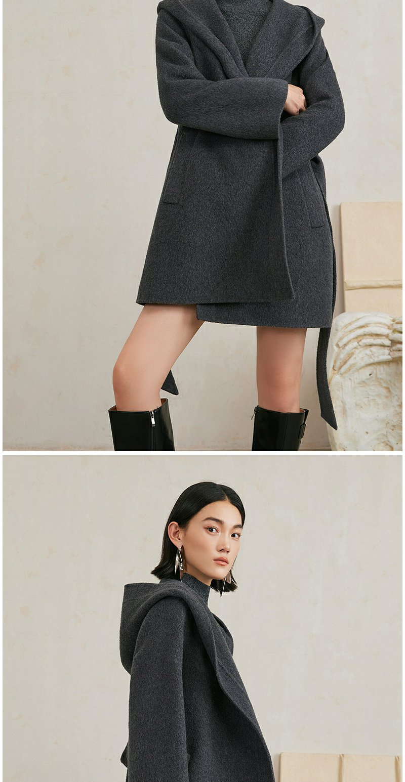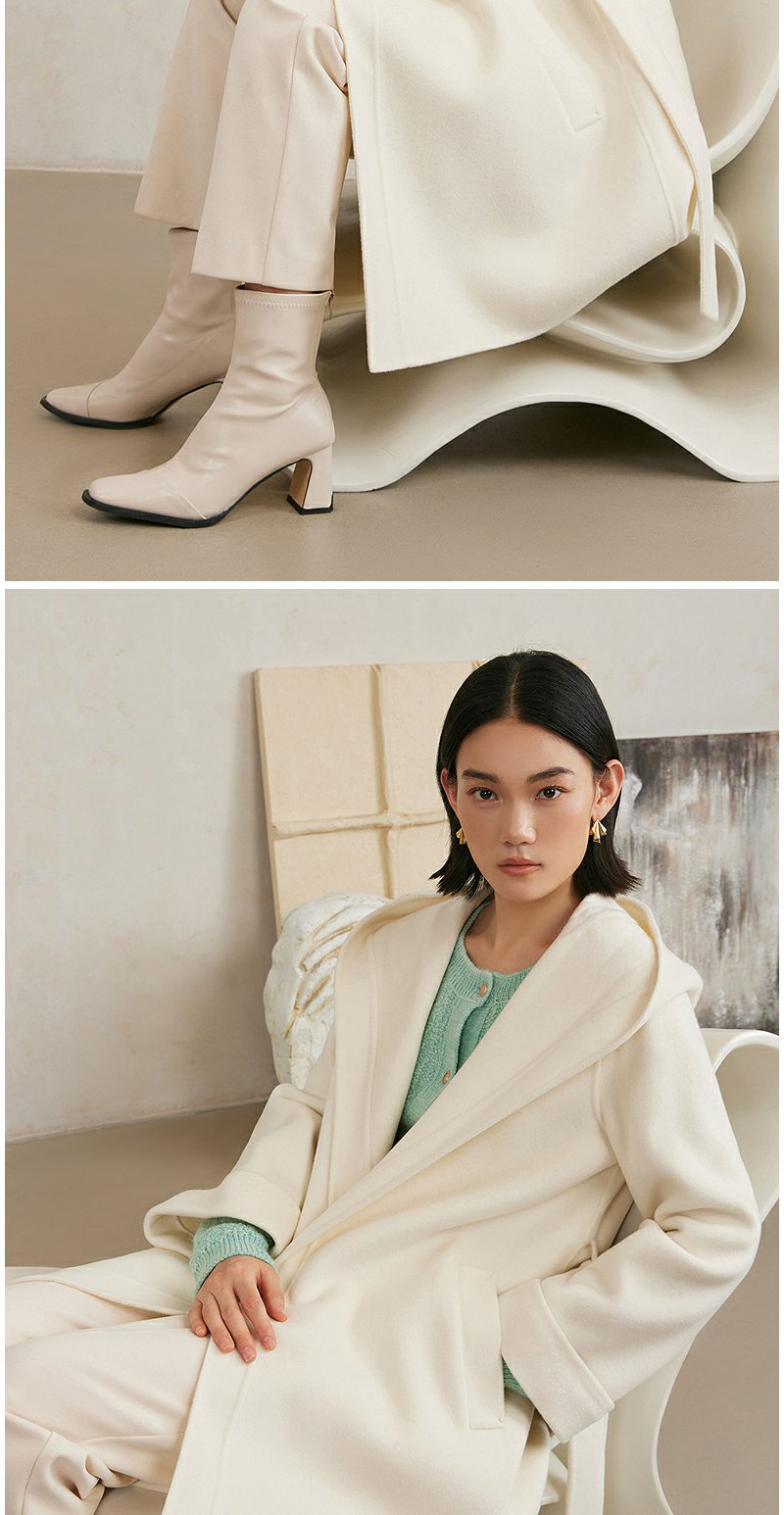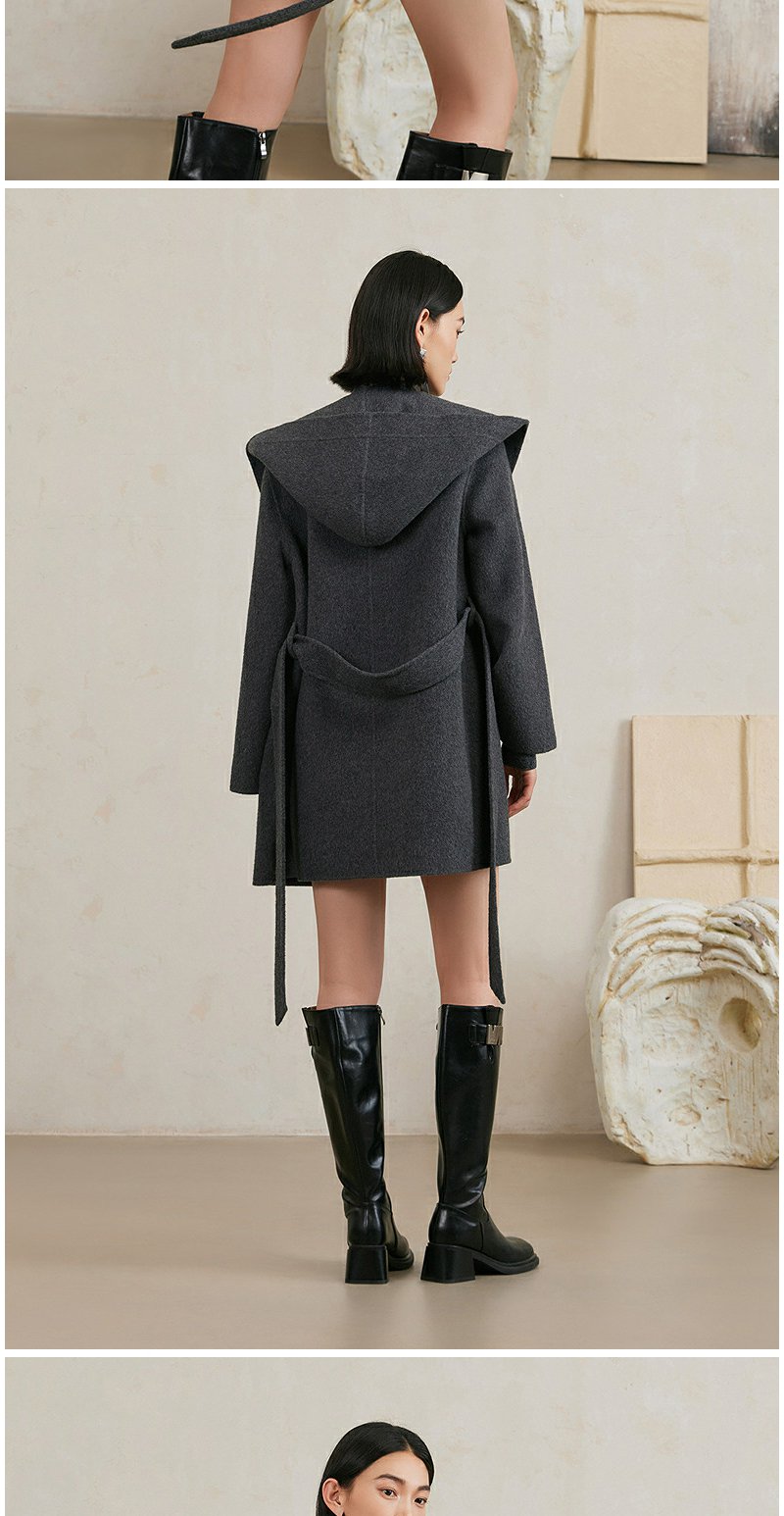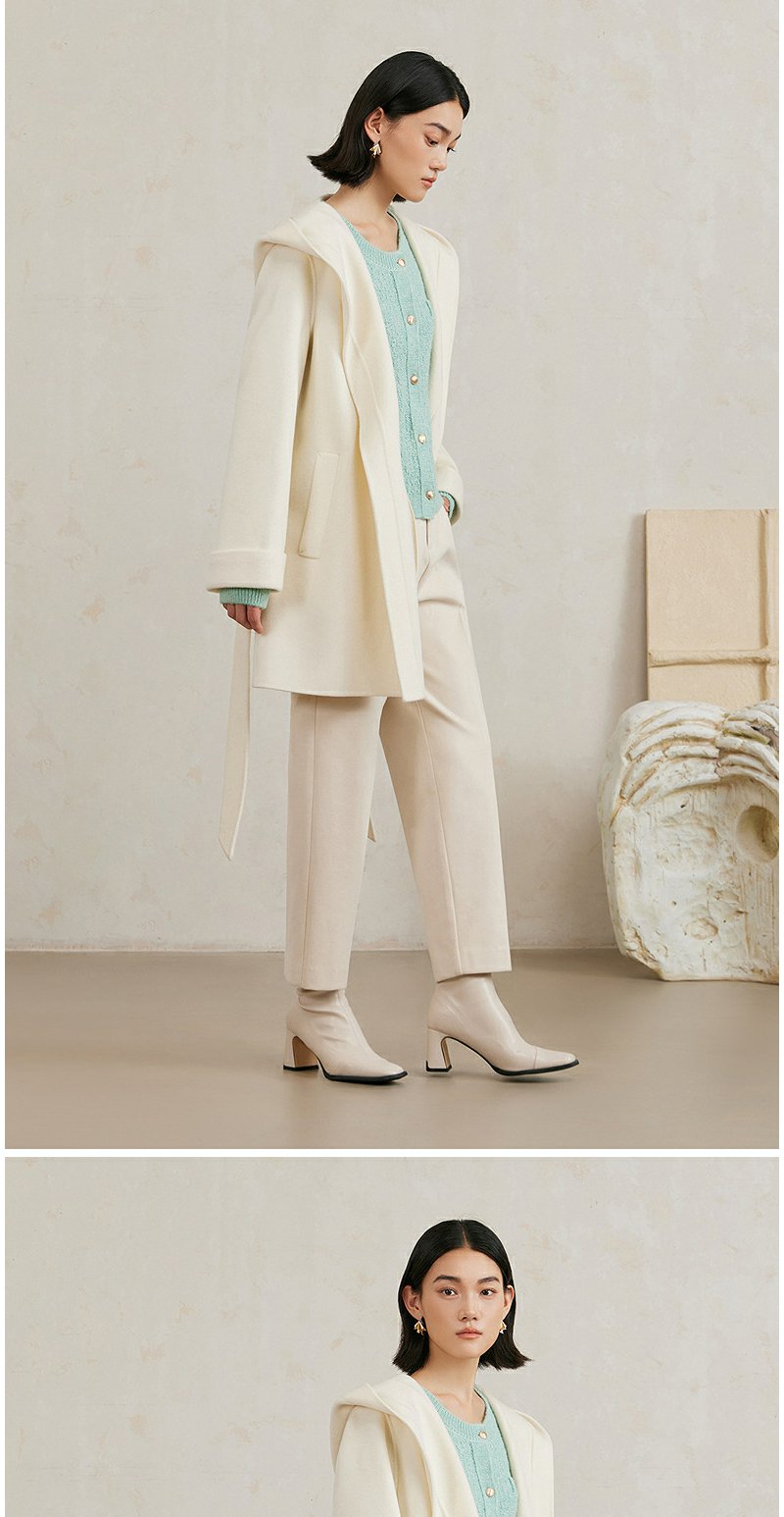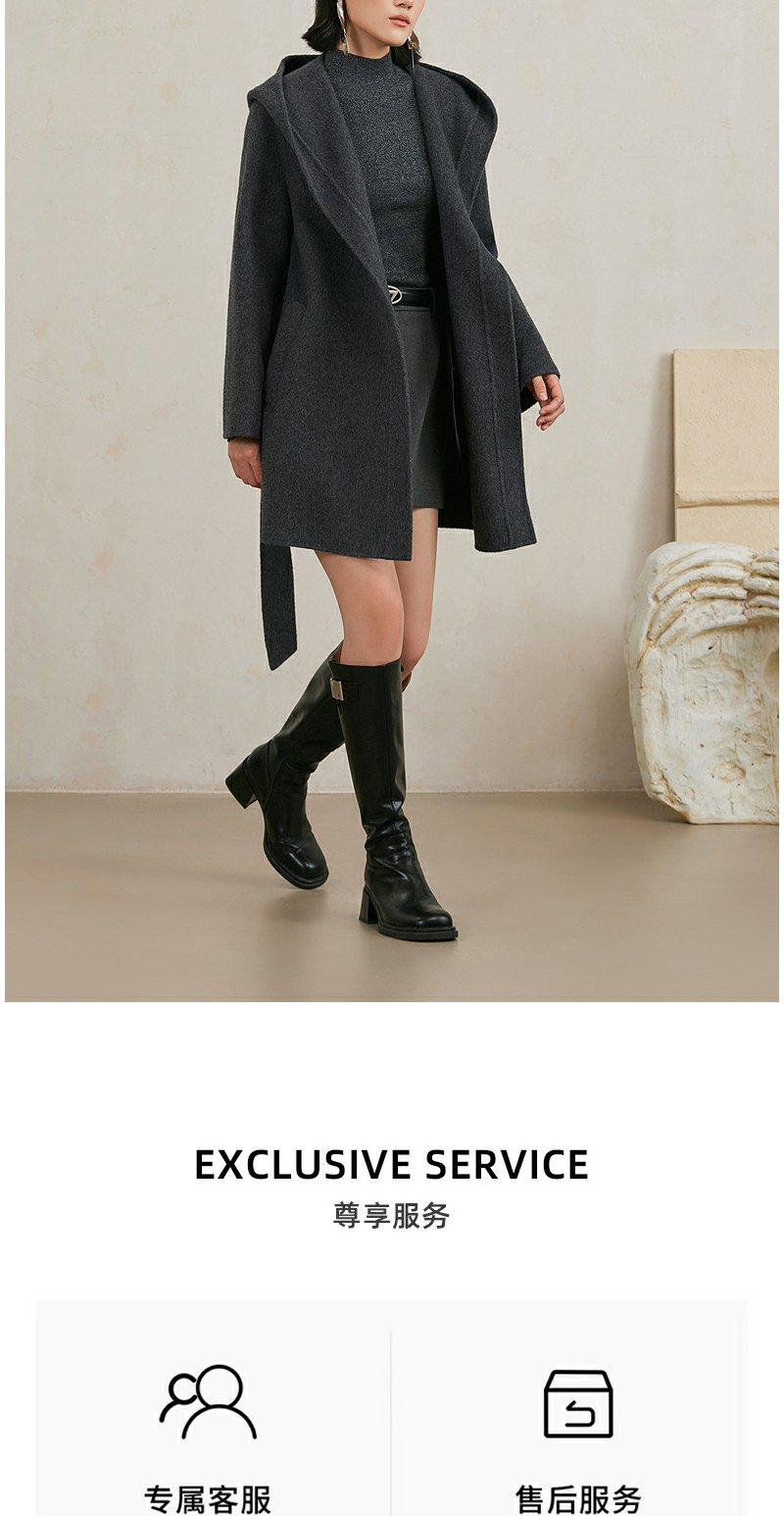 NEELLY纳俪商场同款冬季新款法式绵羊毛双面毛呢外套女连帽大衣N25104N04402
