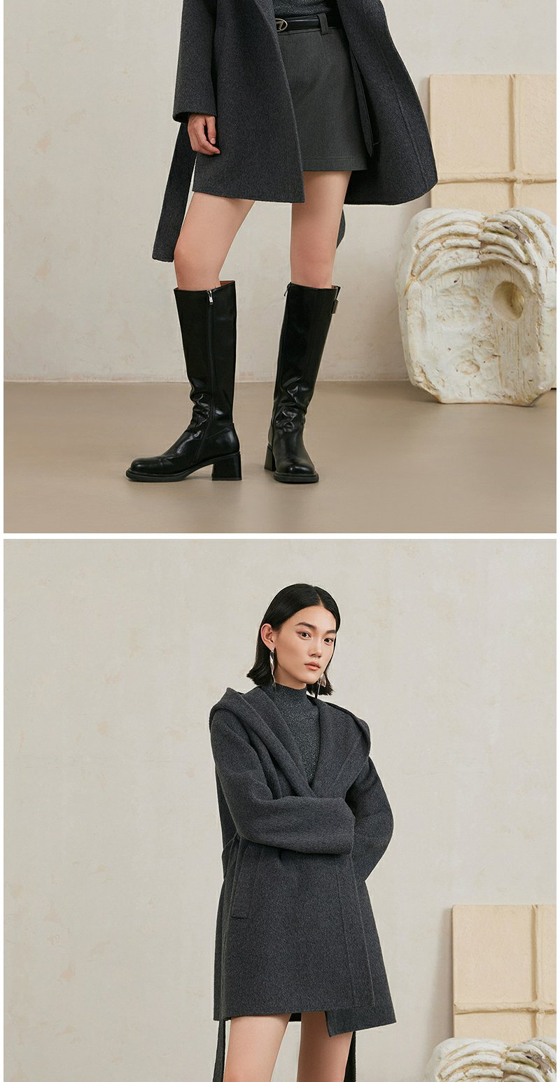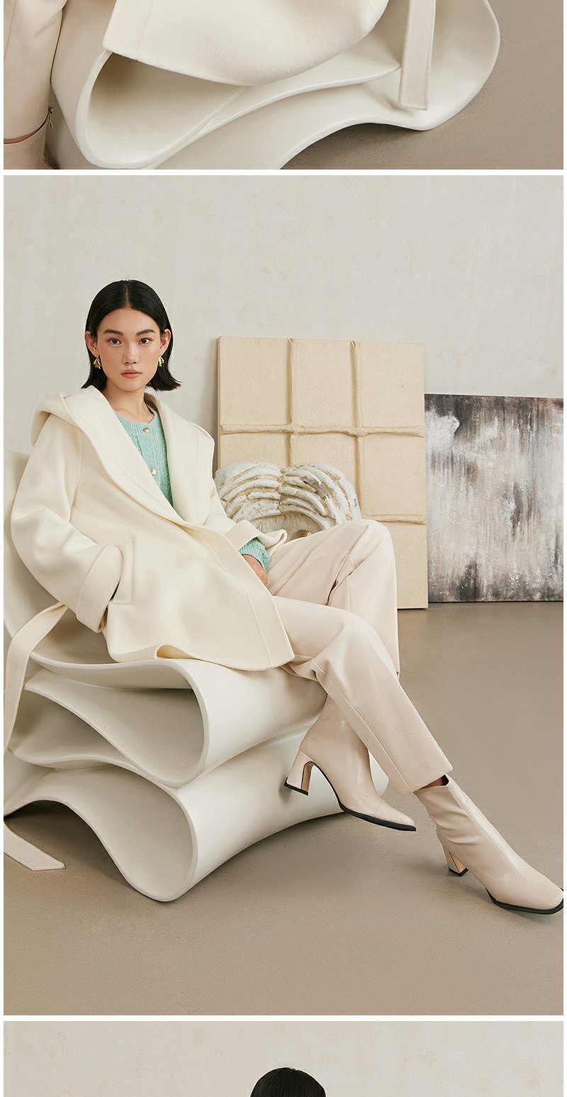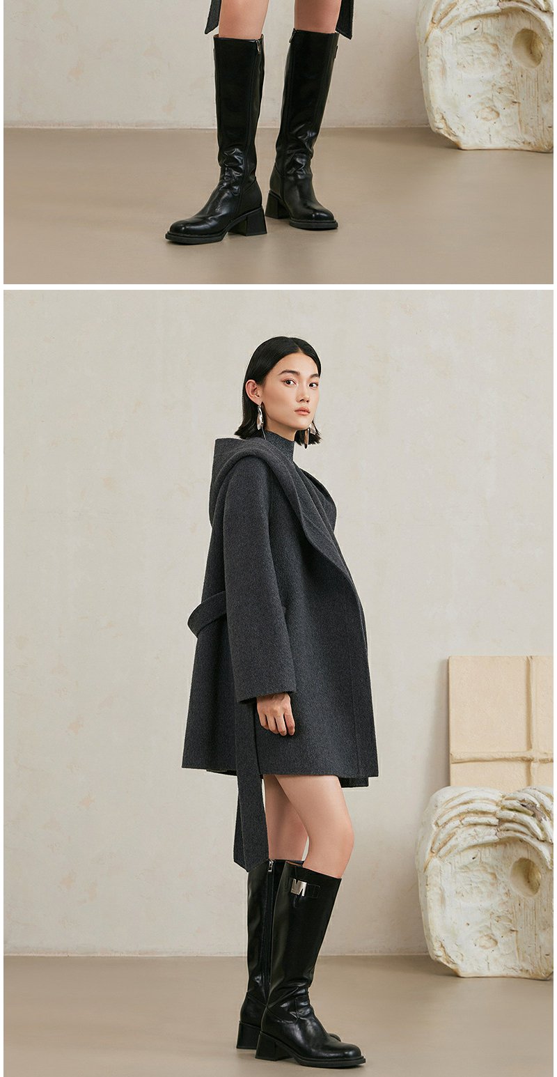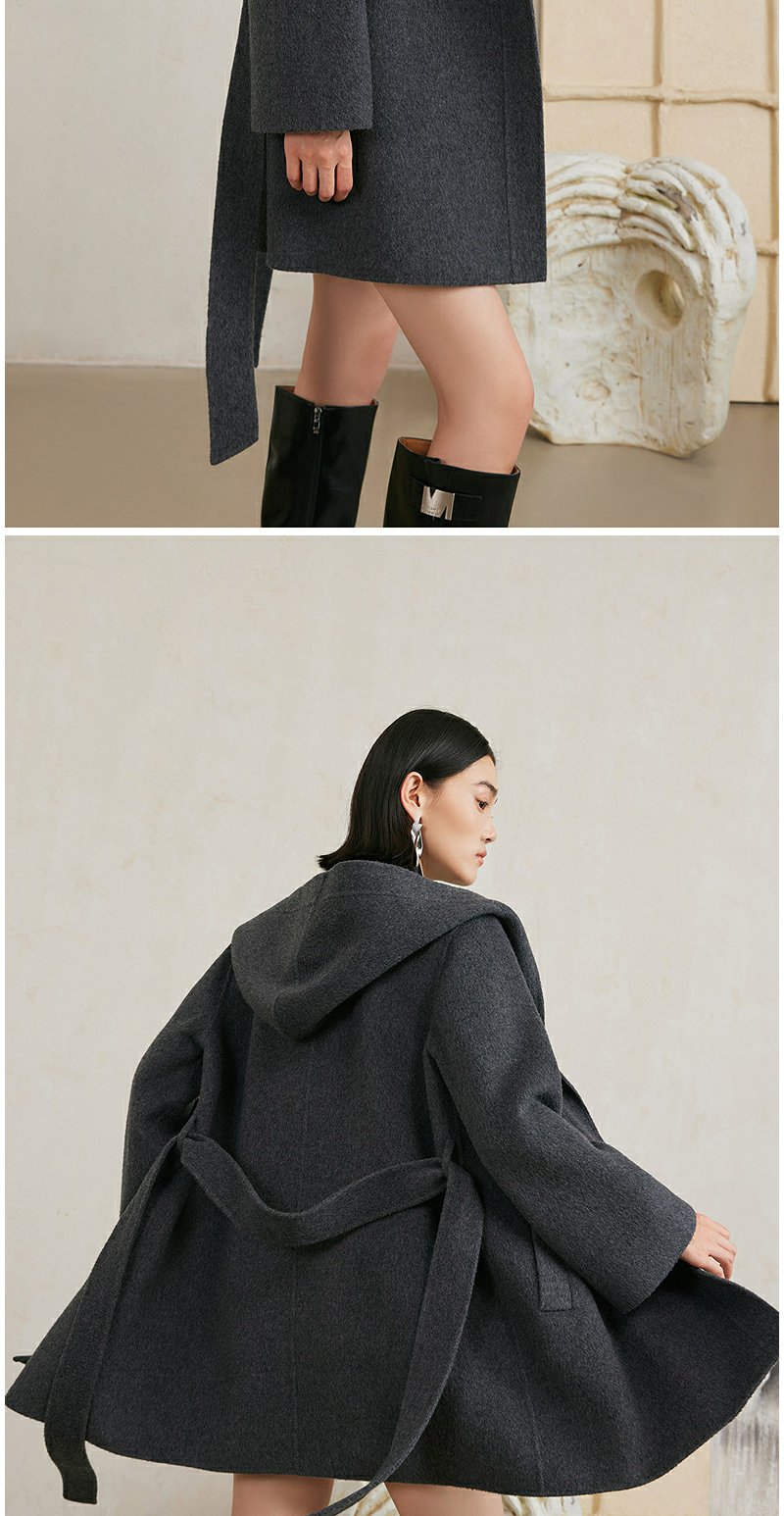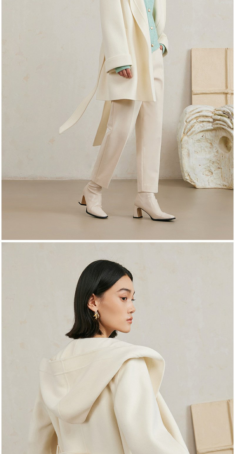 NEELLY纳俪商场同款冬季新款法式绵羊毛双面毛呢外套女连帽大衣N25104N04402