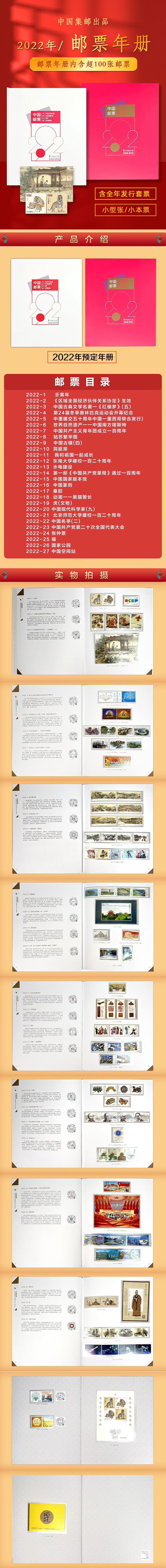 2022年册由中国集邮总公司权威发行,里面包含2022年发行的所有纪特邮票,几个重磅产品都是整版收录,一次集齐,省时省力!收藏或者送人都很不错。