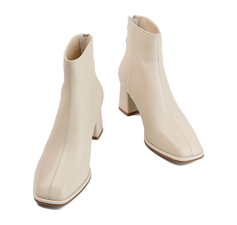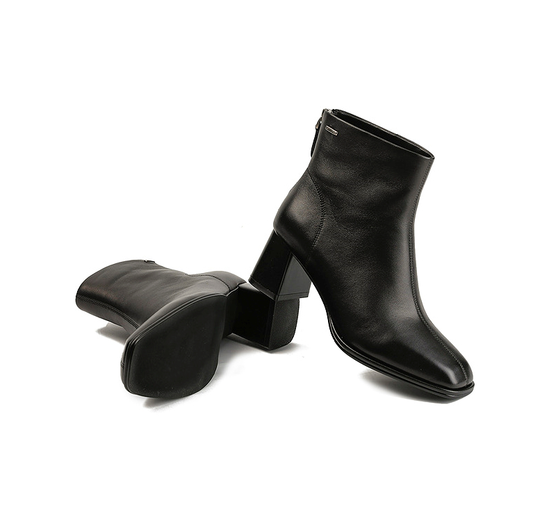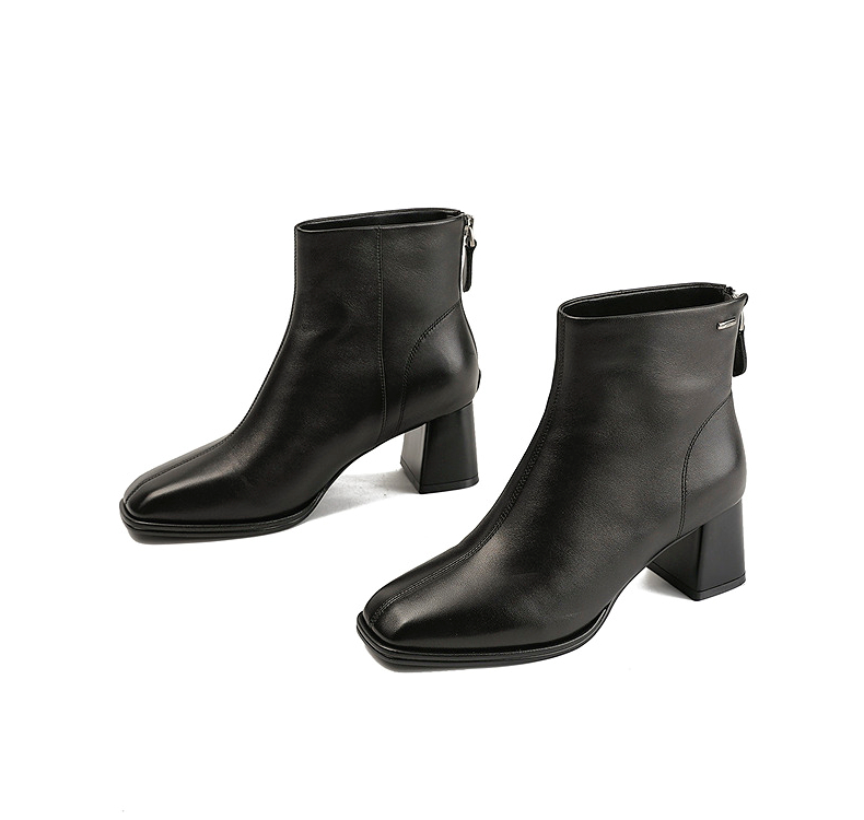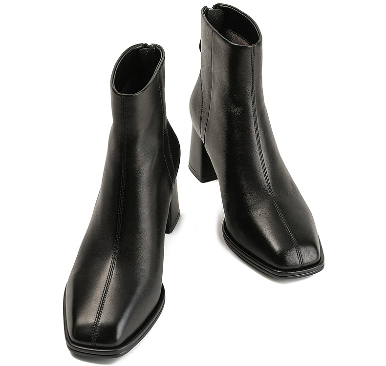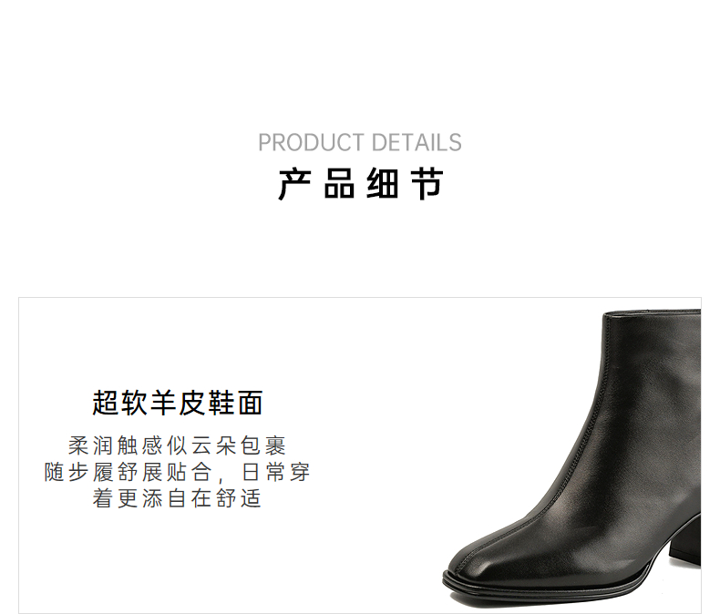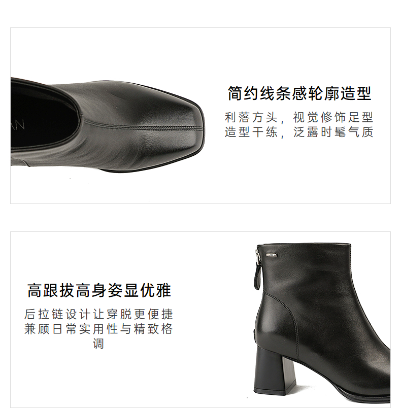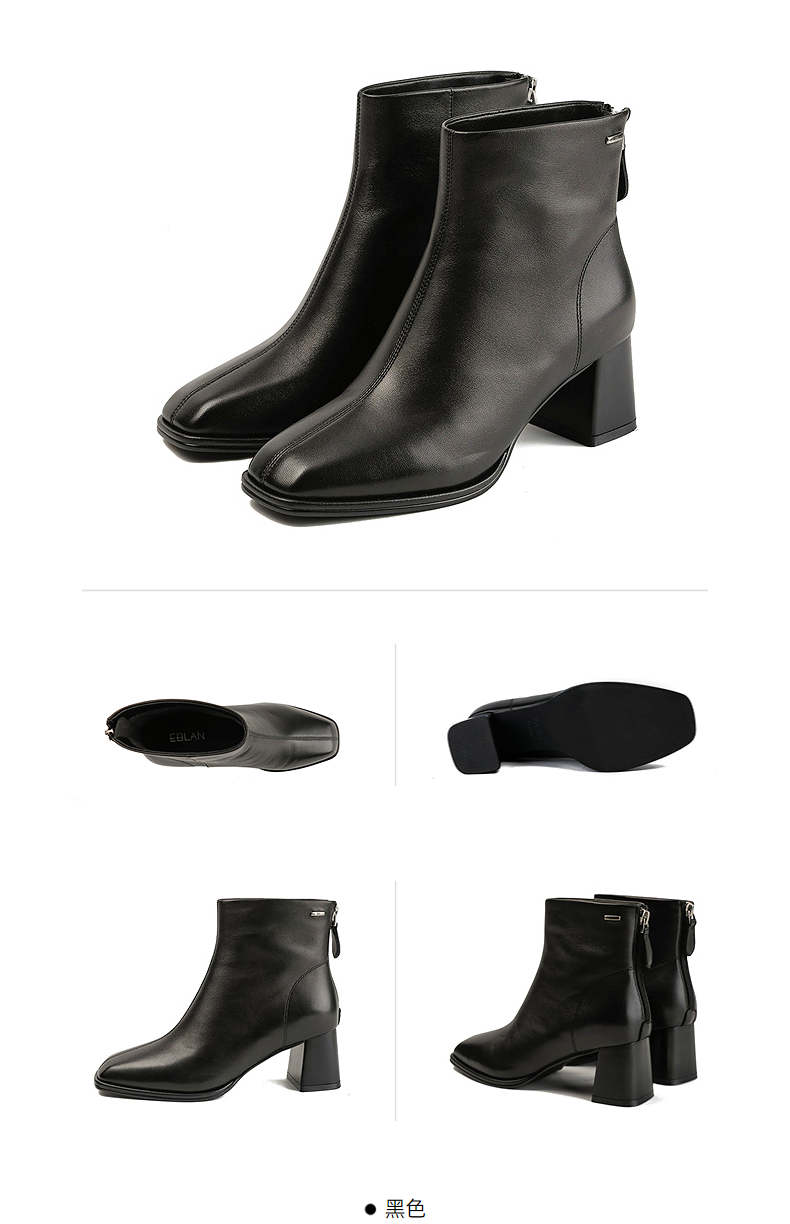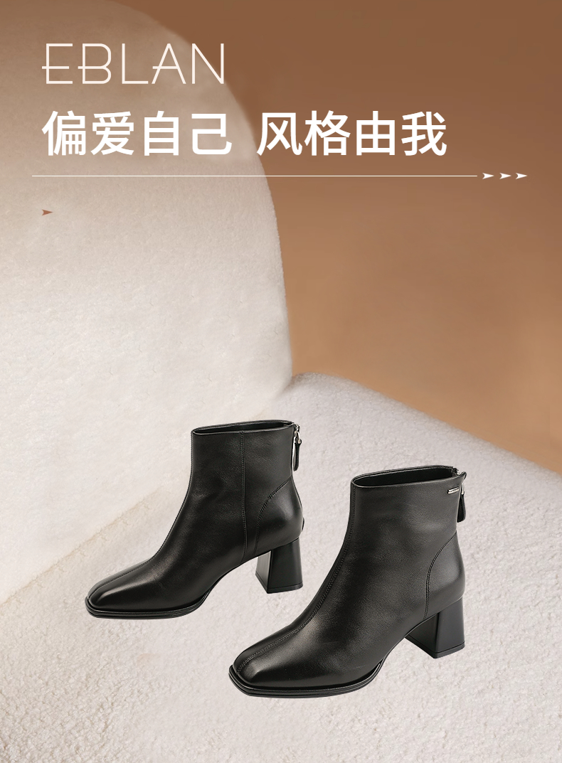 伊伴冬季简约线条感轮廓素面踝靴职场气质穿搭女靴B25551208