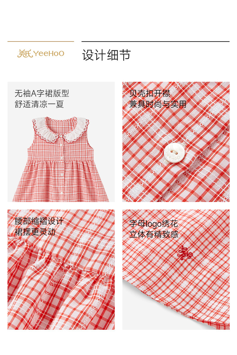 英氏女童背心裙夏新款红色系连衣裙儿童公主裙YRLFJ2S016A