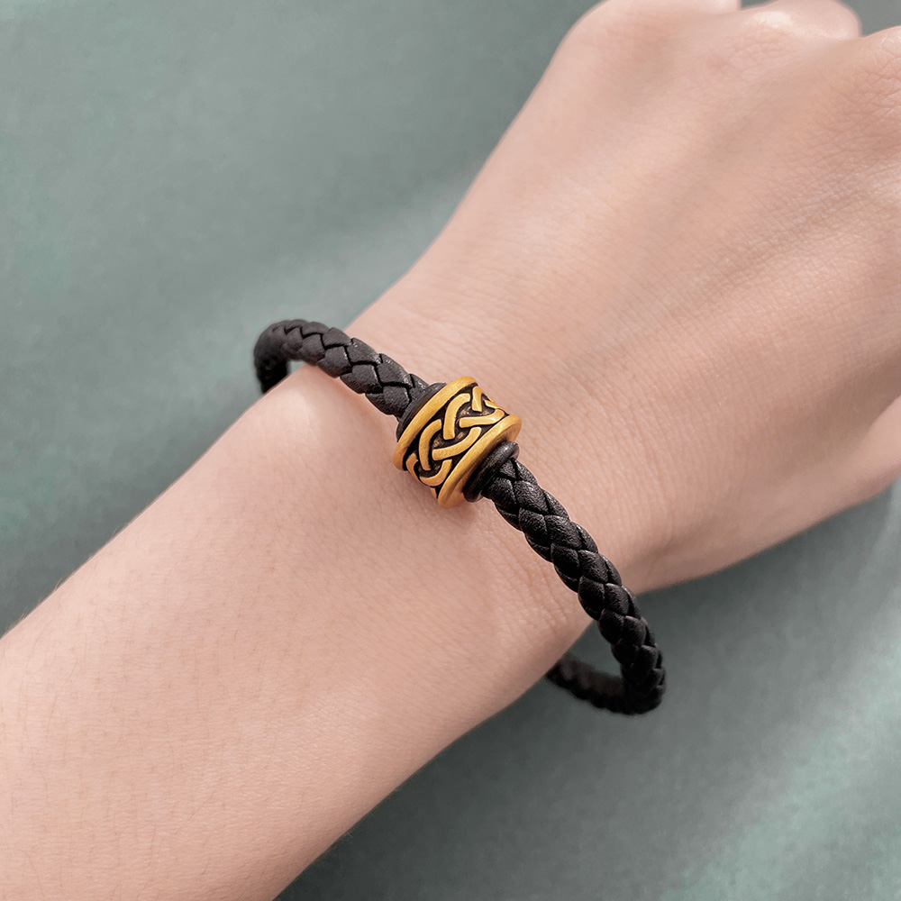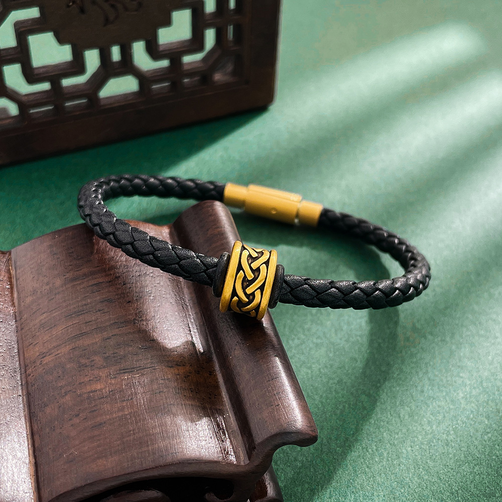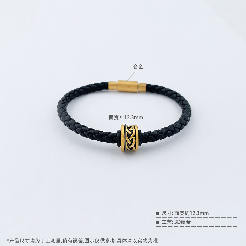 【限时7.5折】【定价黄金】足金 #电黑金 #情侣 3D硬金电黑金力量图文不可调节黑编织皮绳手链成品手串(扣饰材质为合金,绳约5mm)(RFXMB0064-A)预售产品下单后不退款不退货不换货不补差价