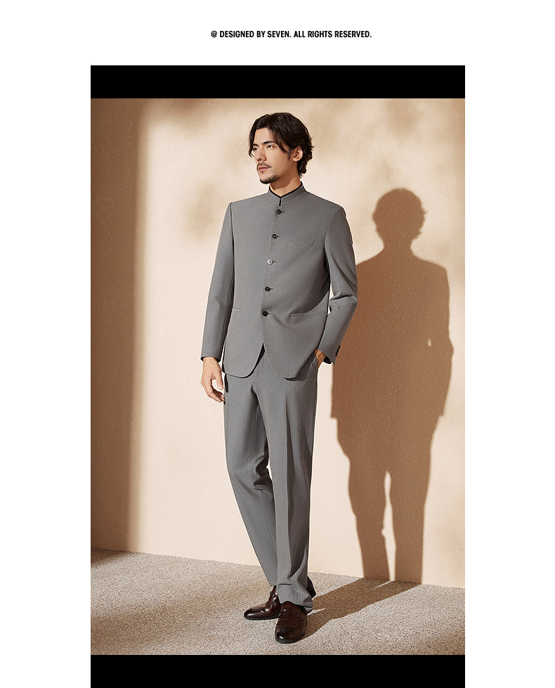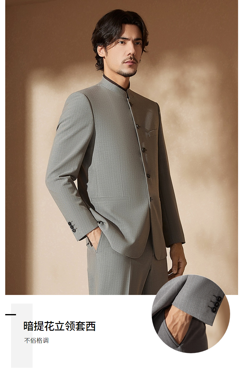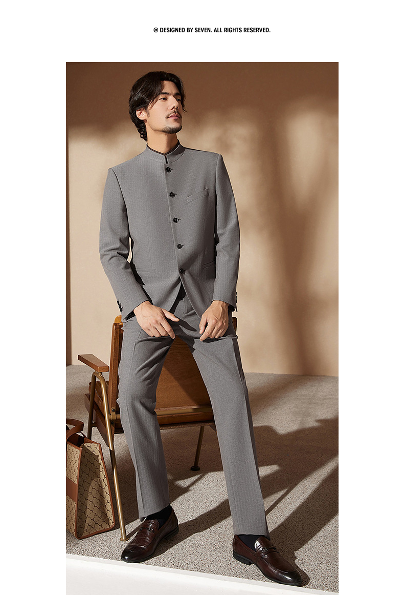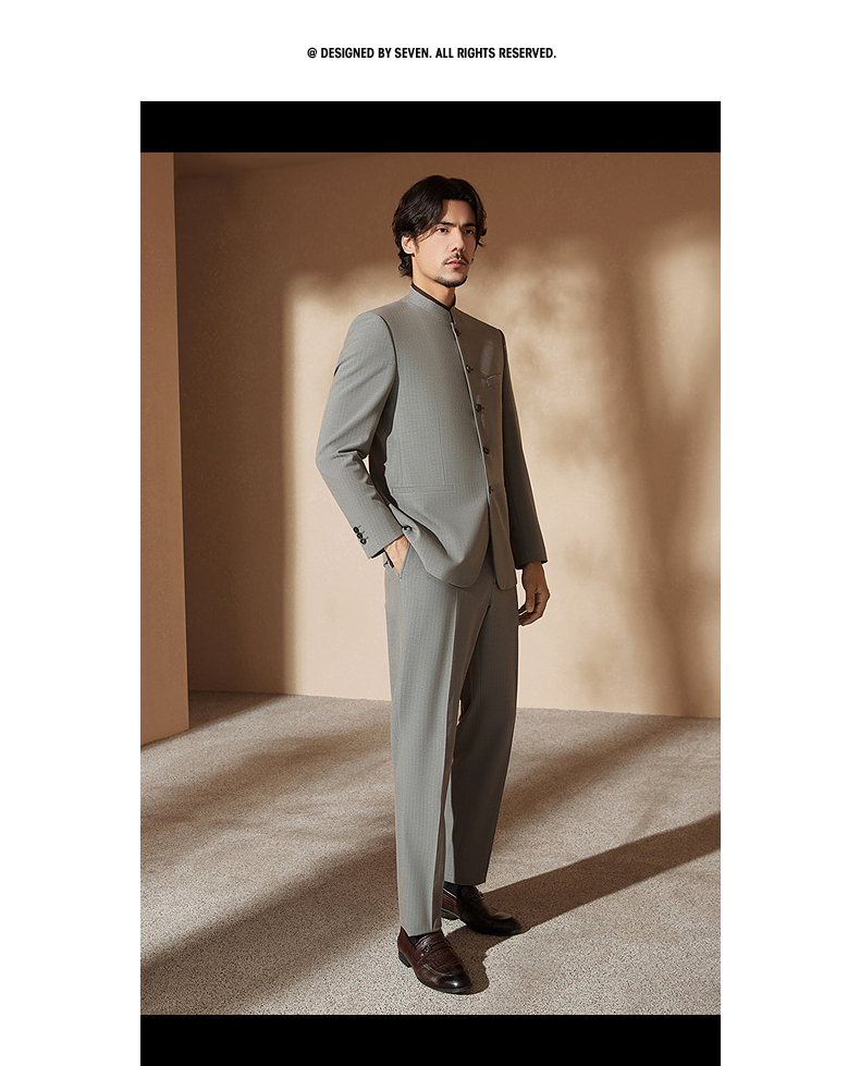 【婚礼季/中华立领】柒牌西装男士套装秋季新款人字纹提花五粒单排扣西服 127C70630