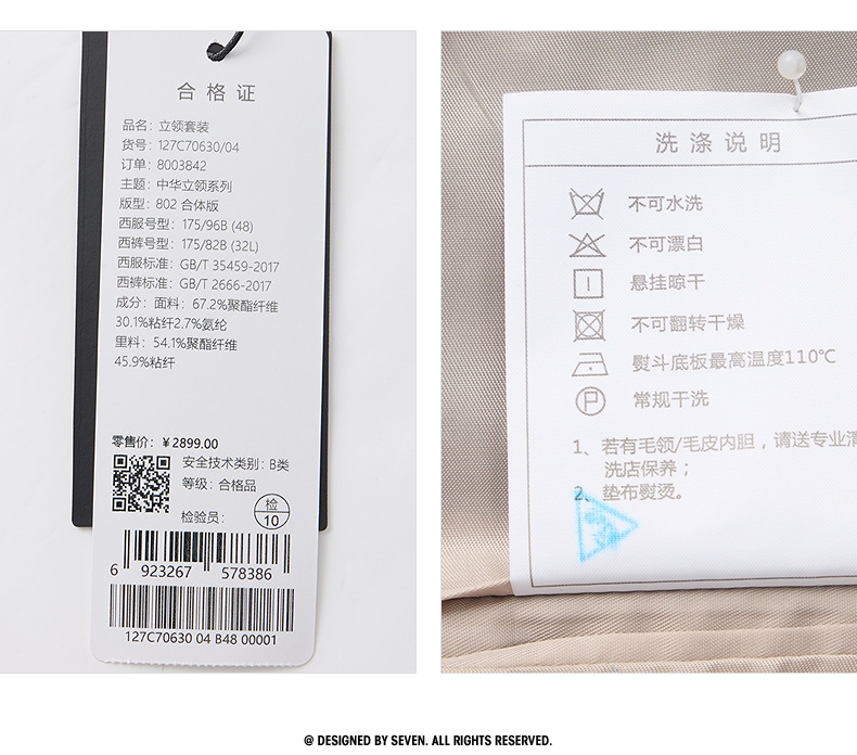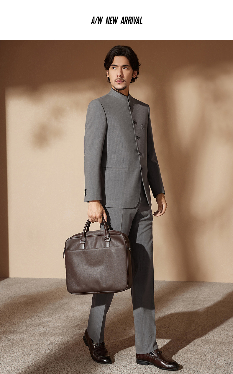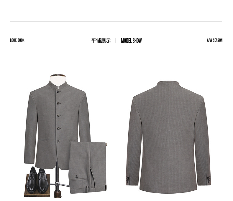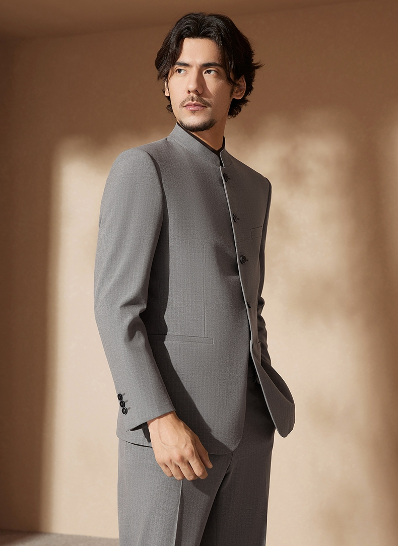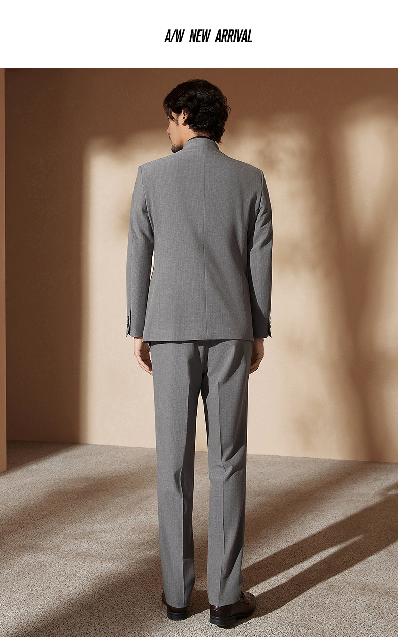 【婚礼季/中华立领】柒牌西装男士套装秋季新款人字纹提花五粒单排扣西服 127C70630