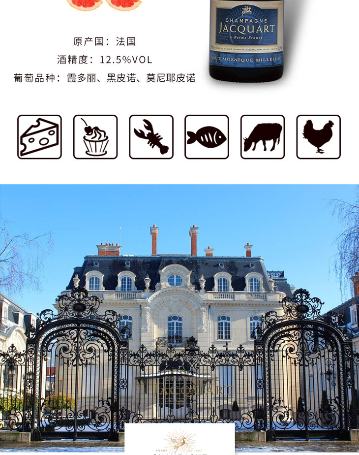 霞卡幕萨克优年份香槟葡萄酒 Jacquart Brut Mosaique Millesime 2002 750ml
