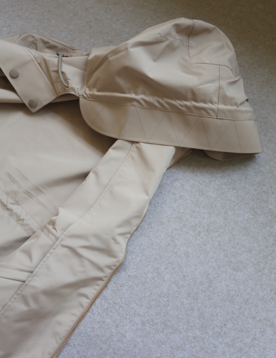 连帽款 帽檐是加长风帽的设计 可沿着缝线外翻 帽堂也很大