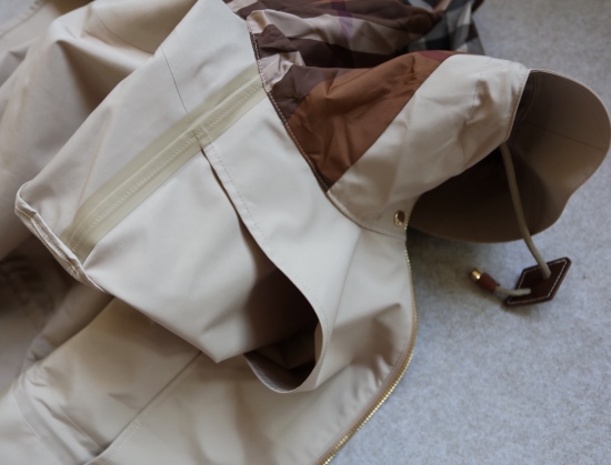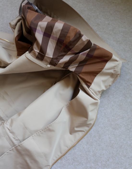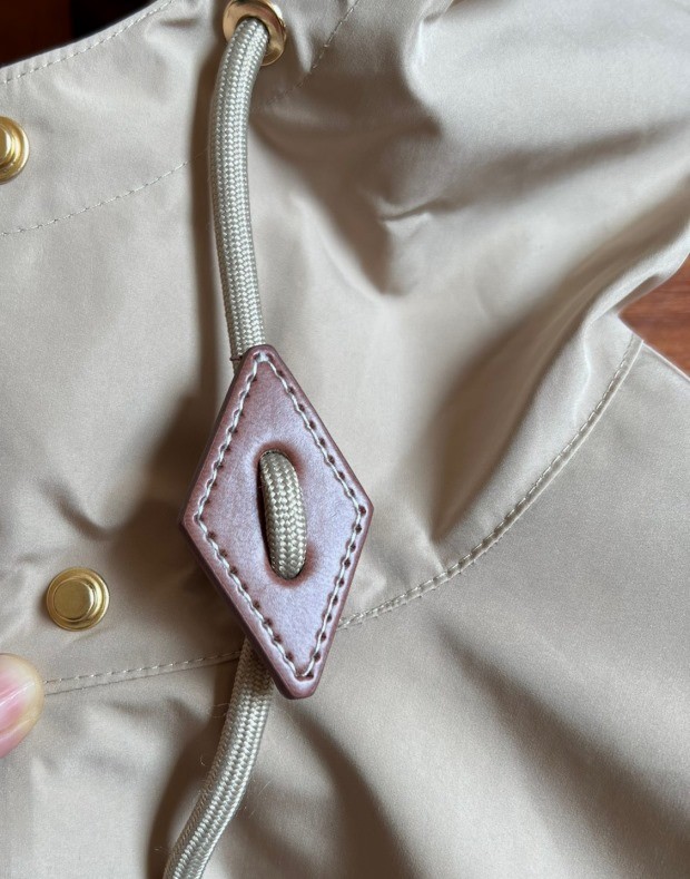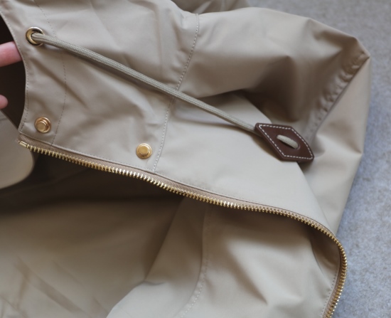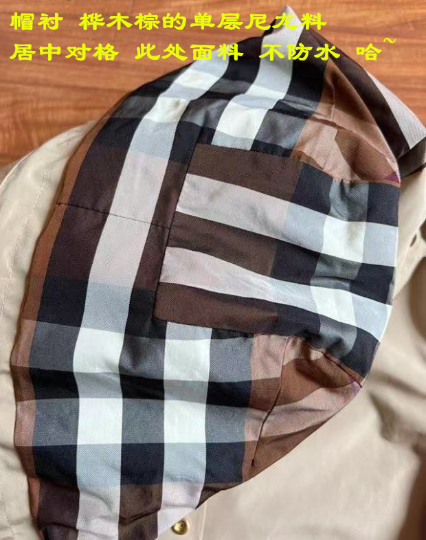帽衬 桦木棕的单层尼龙料 格纹部分是居中对格的 此处面料 是不防水的