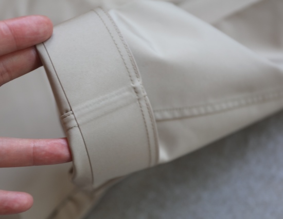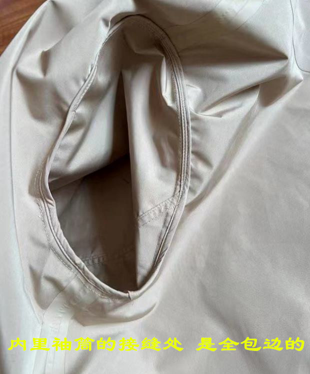 内里袖筒的接缝处 是全包边的 大身和袖口的接缝处 都是全防水压胶的