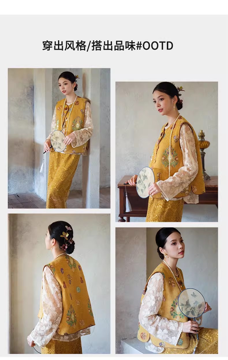 【门店同款】ENJOY秋季云敛-东方画笔花朵刺绣马夹 166296833