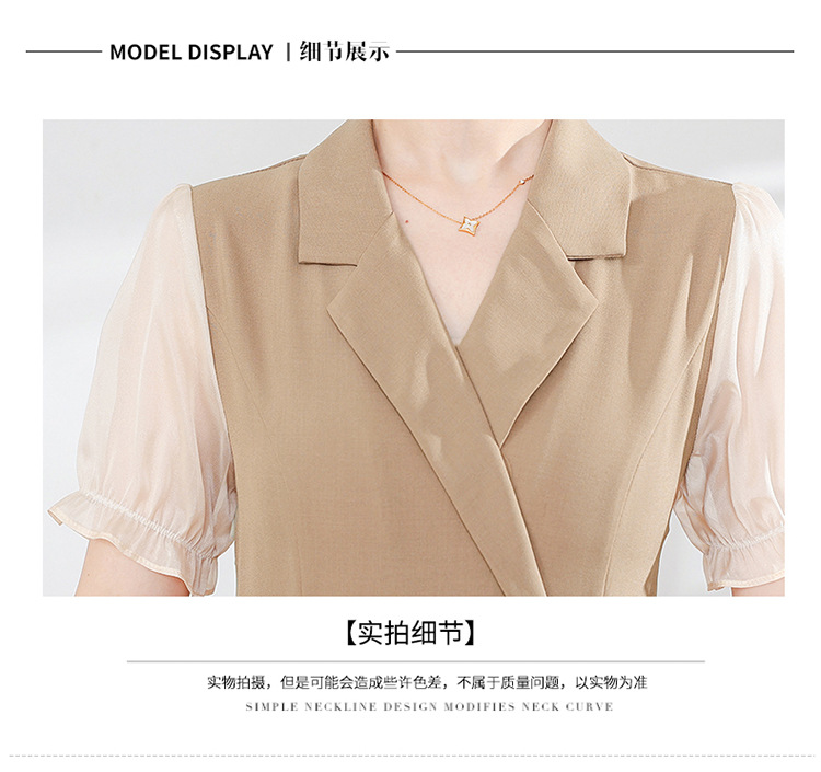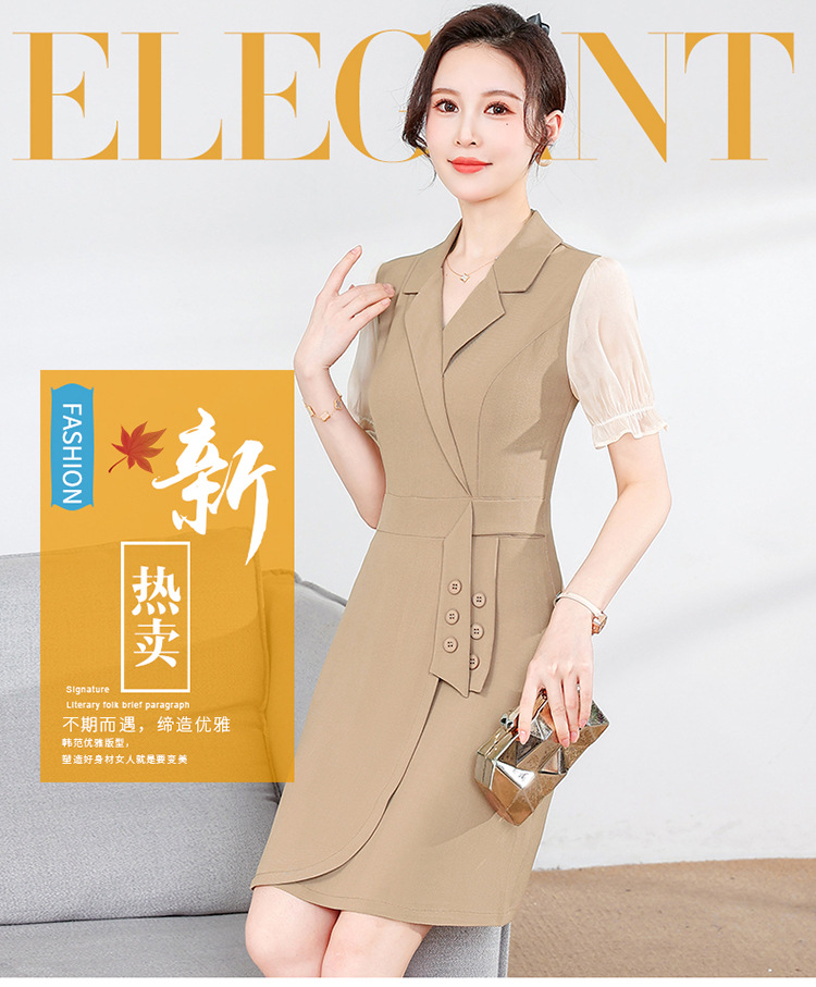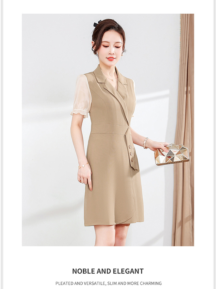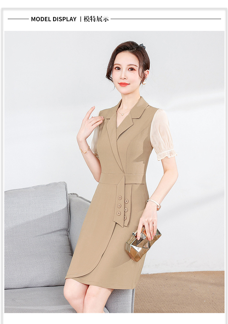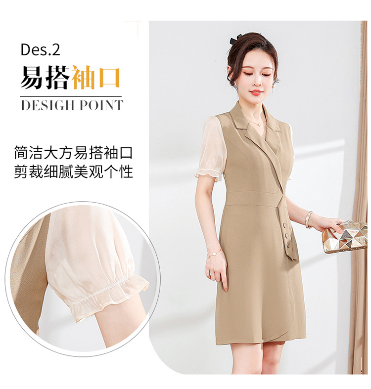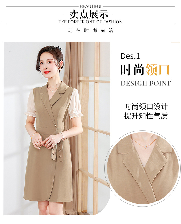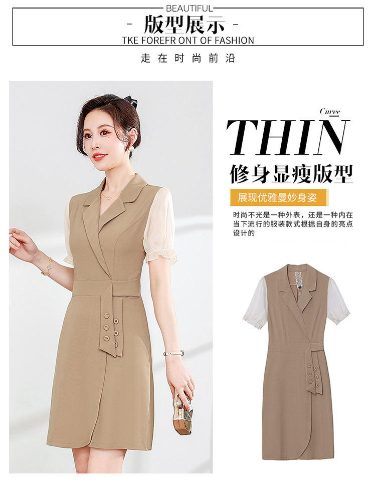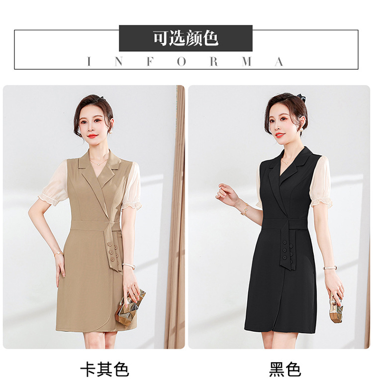 宽松休闲,西装领中长款连衣裙夏季新款短袖裙纯色连衣裙QYM-XY-23Q18-Y