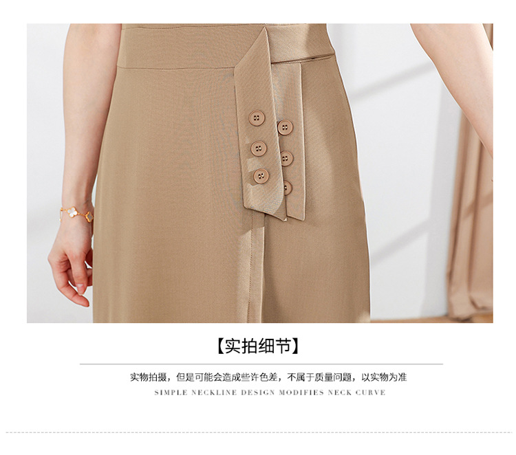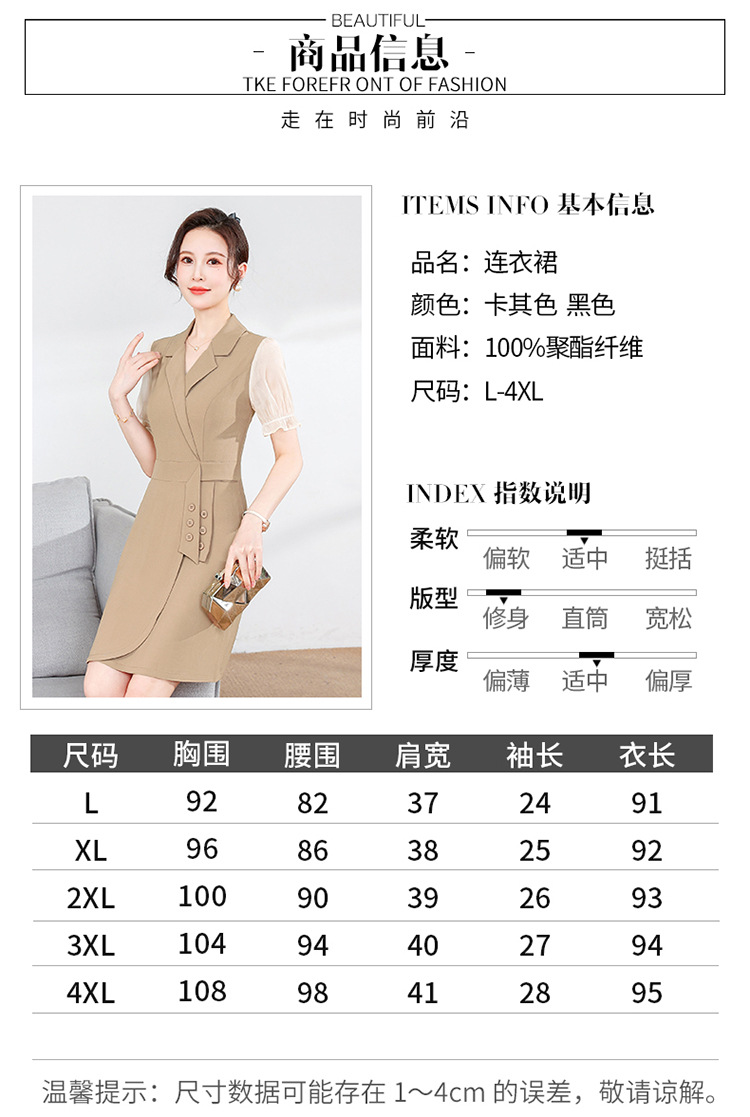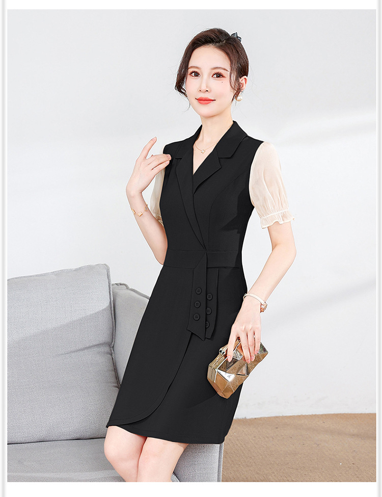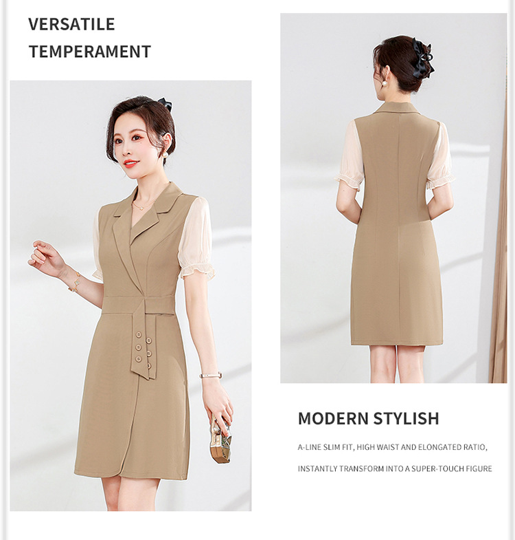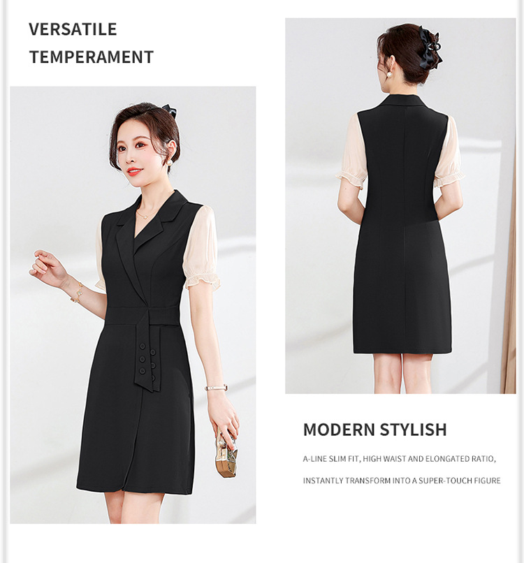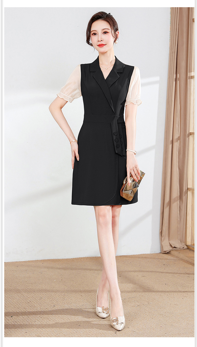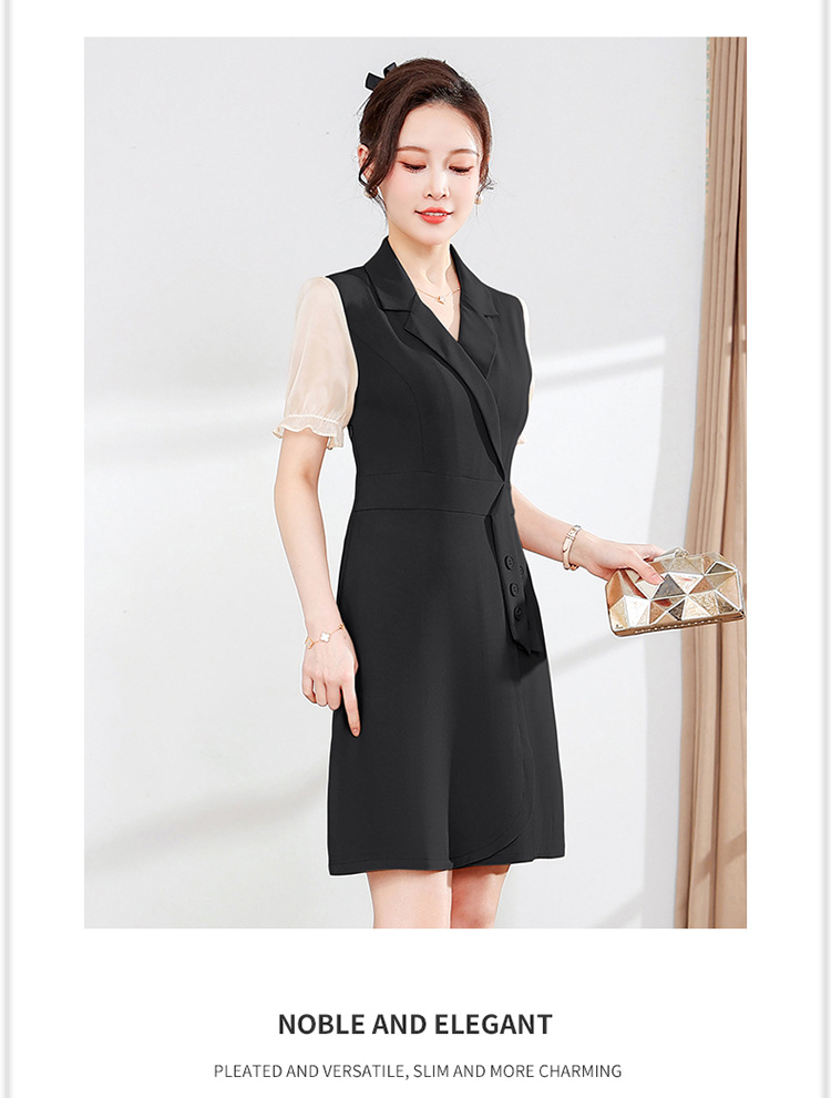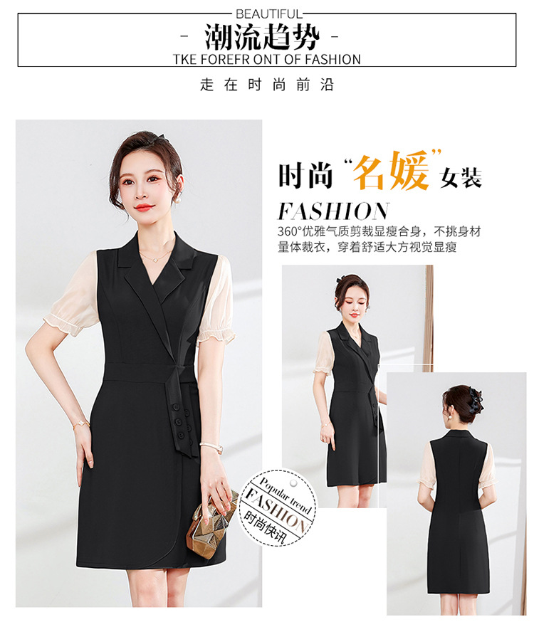 宽松休闲,西装领中长款连衣裙夏季新款短袖裙纯色连衣裙QYM-XY-23Q18-Y