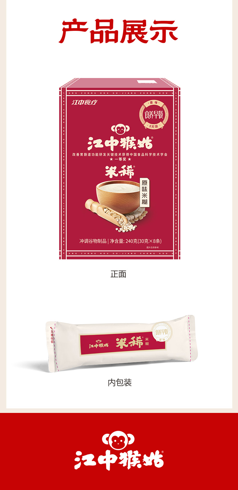 4盒*江中猴姑米稀原味米糊8天装 8包/240克/盒,保质期至2026年9月【限购1件】