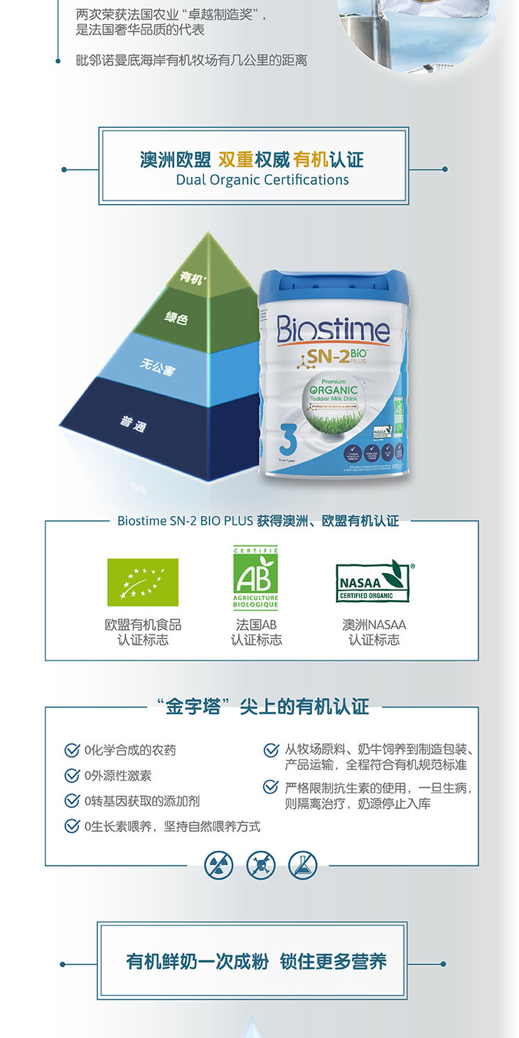 BIOSTIME 合生元 澳洲臻稀有机婴儿配方奶粉3段 800克 (2020年8月到期)