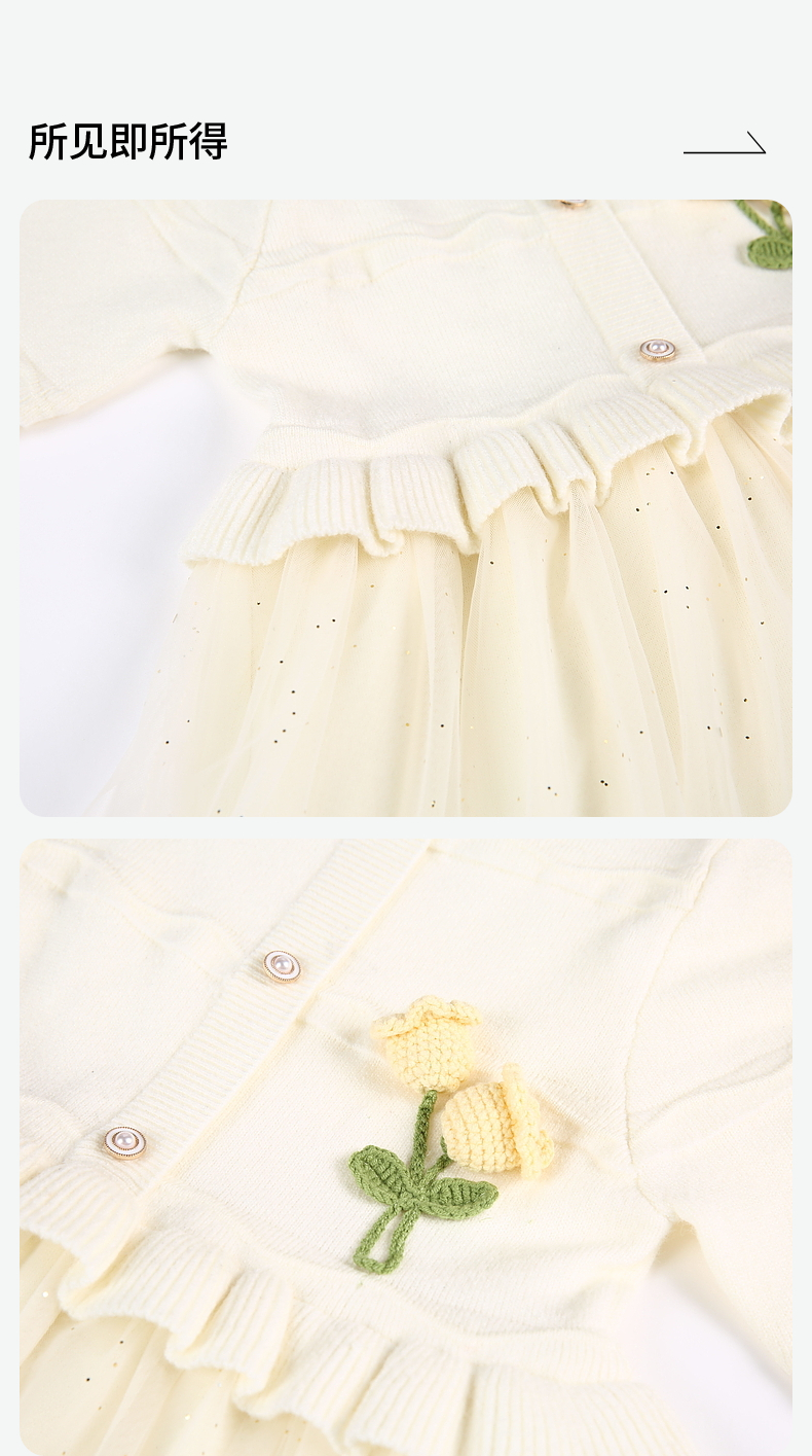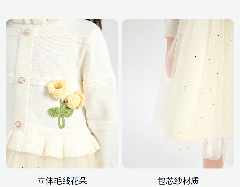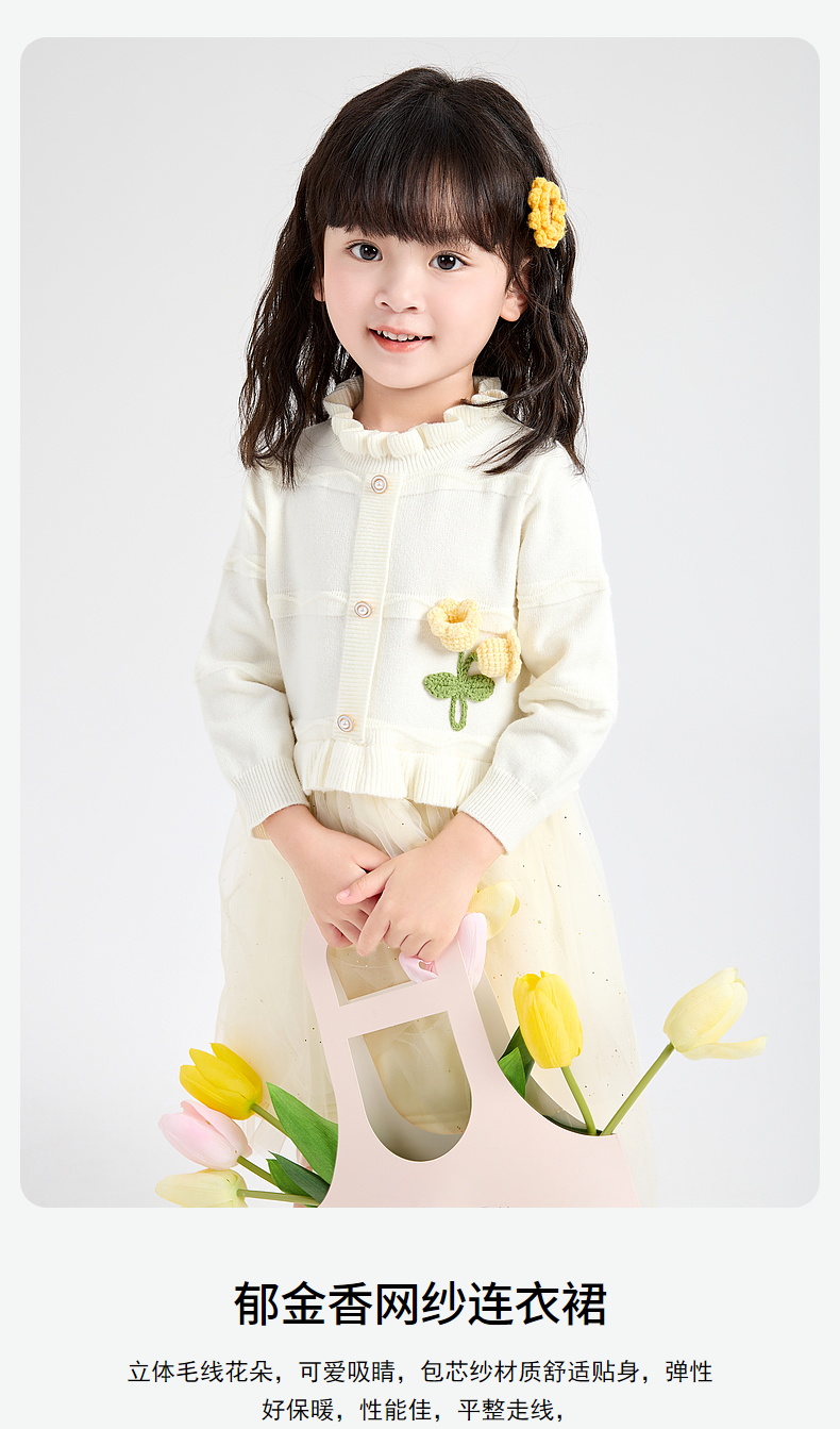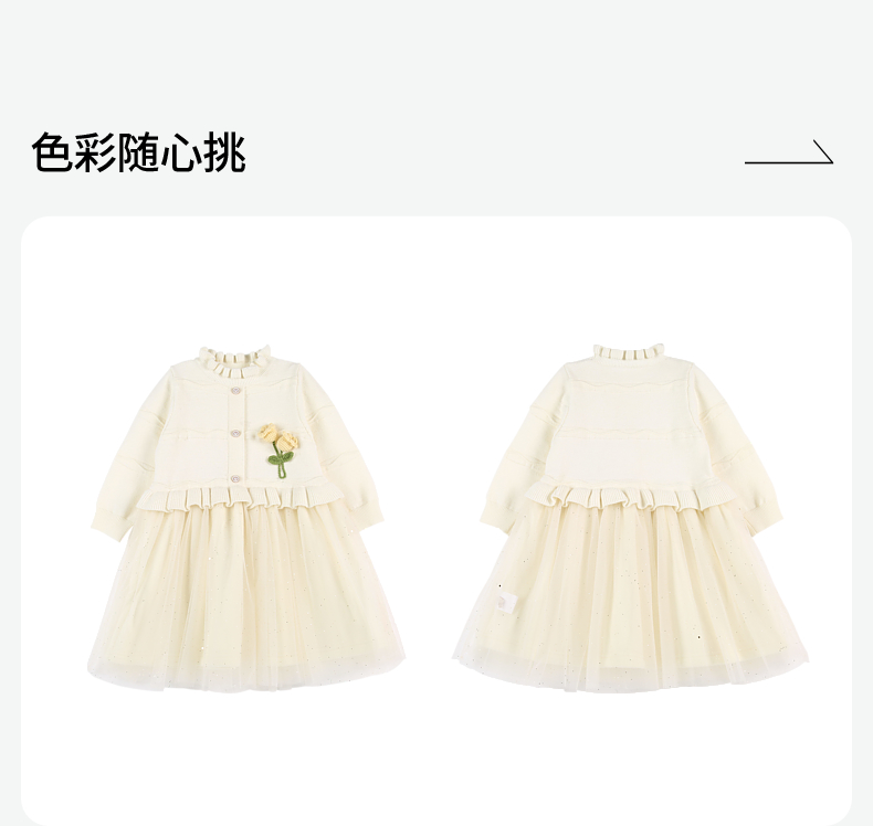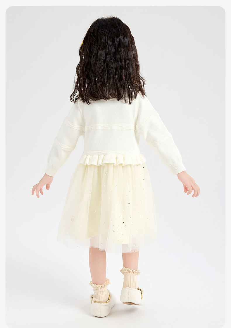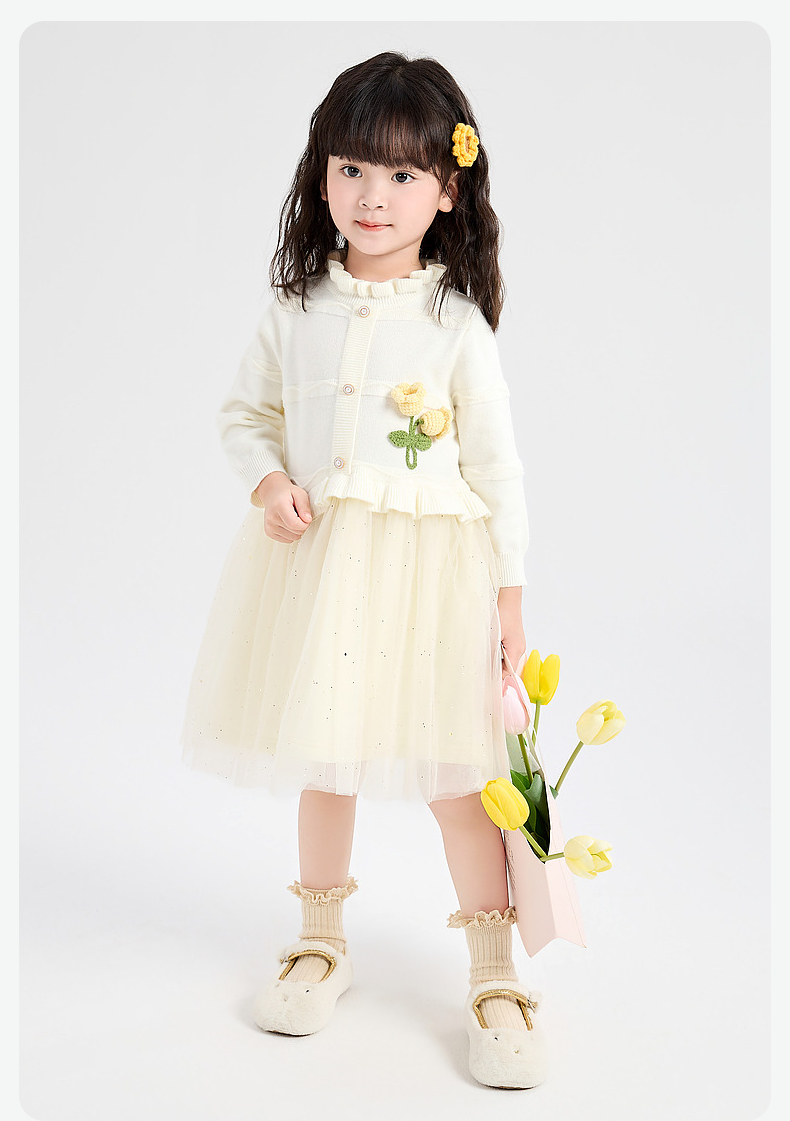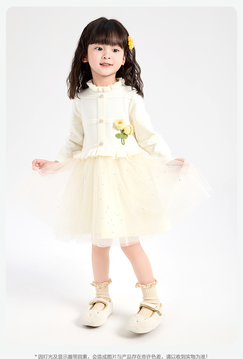 笛莎Deesha童装女童连衣裙2023冬季新款小童郁金香网纱连衣裙
