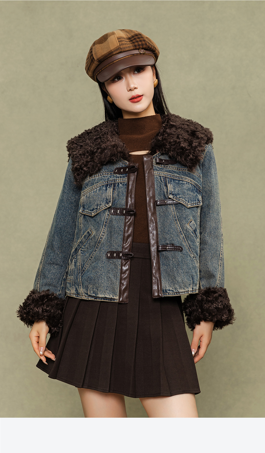 冬上新韩系时髦毛绒拼接牛仔羽绒服2254121