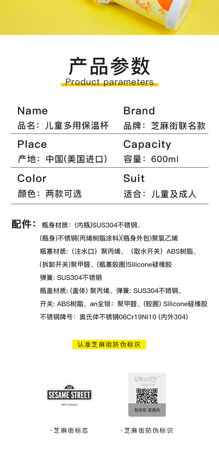 芝麻街联名款儿童多用保温杯
