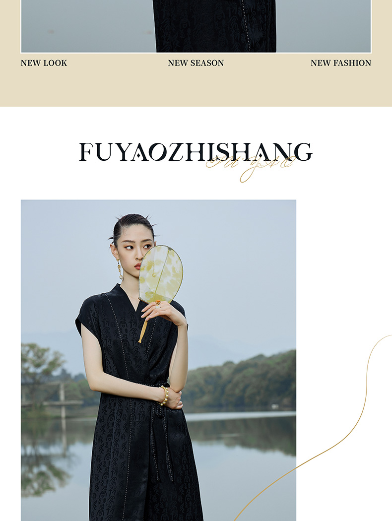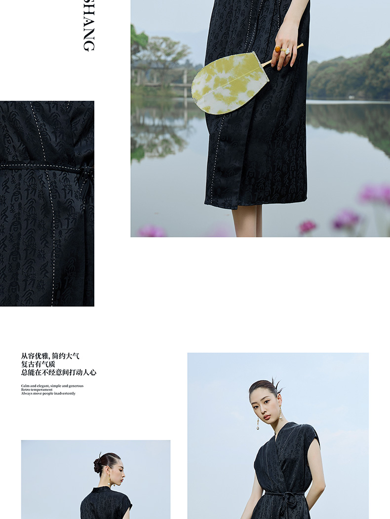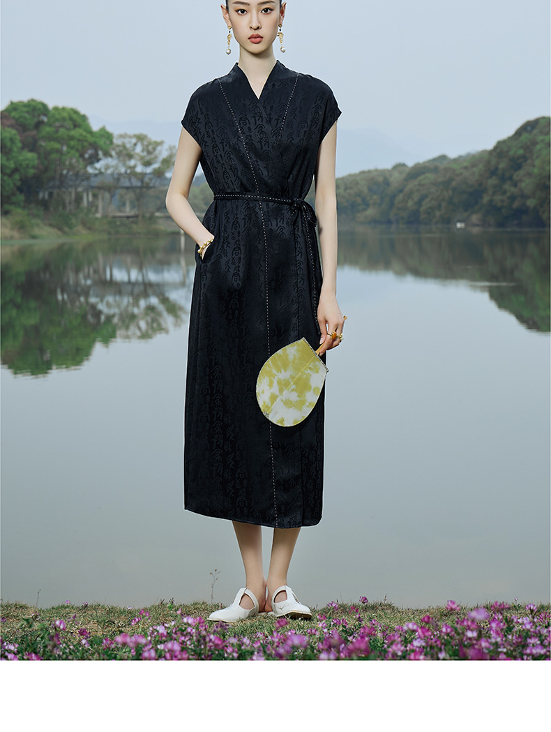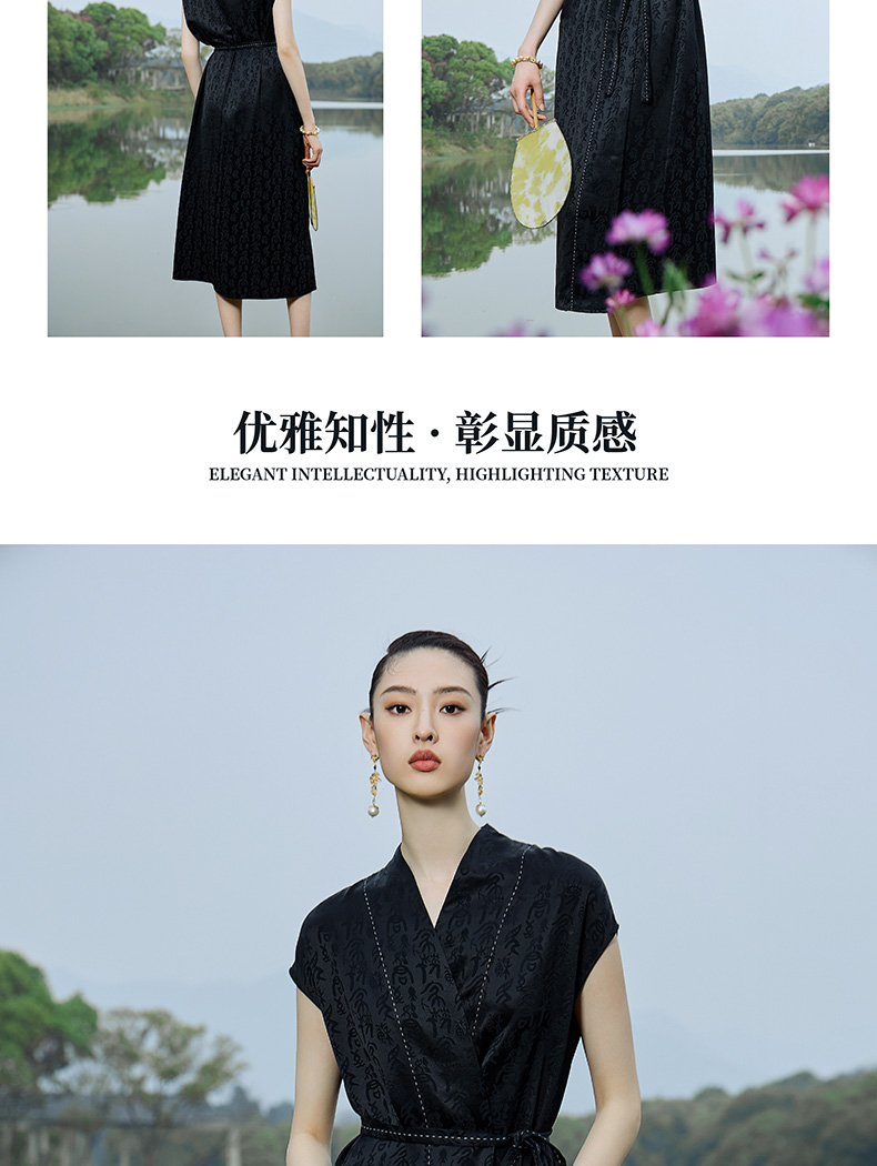 IWY/扶摇系列 夏季缎面提花V领连衣裙23FYQ137