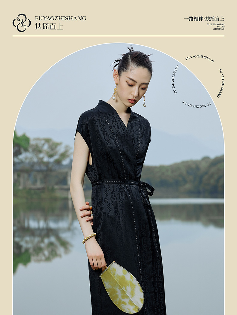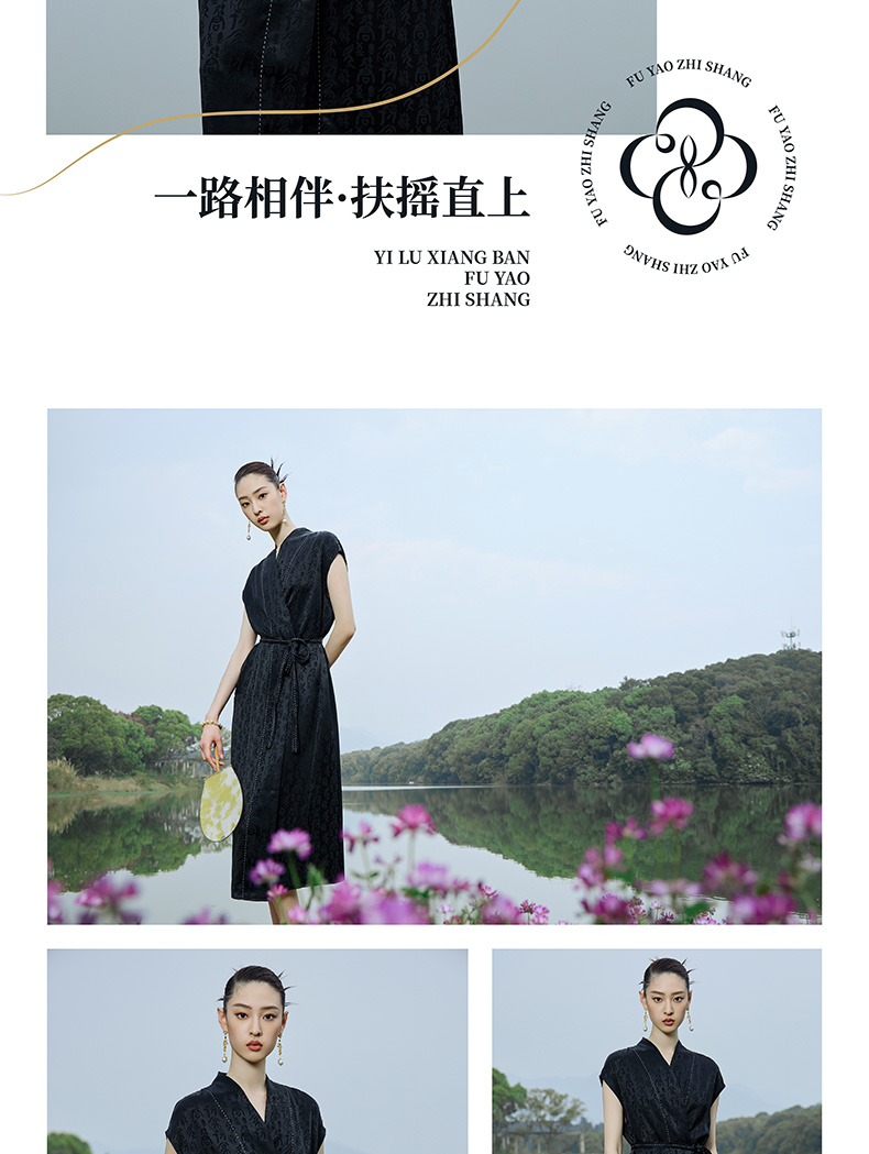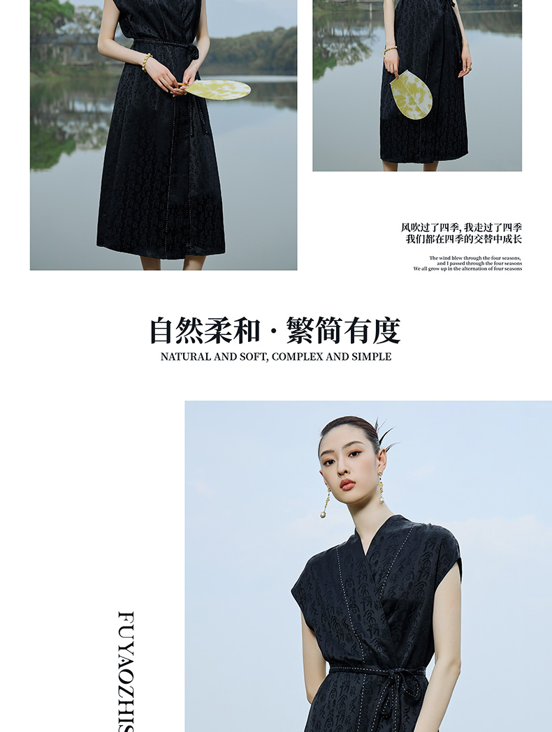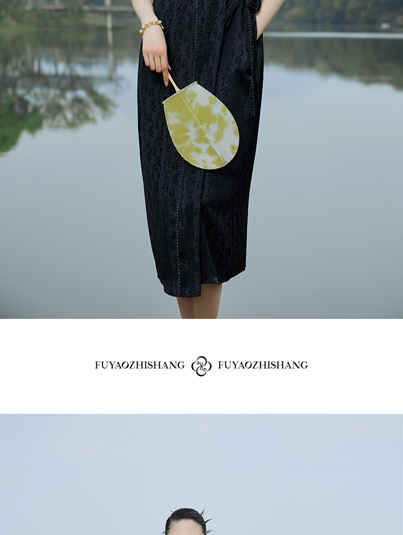 IWY/扶摇系列 夏季缎面提花V领连衣裙23FYQ137