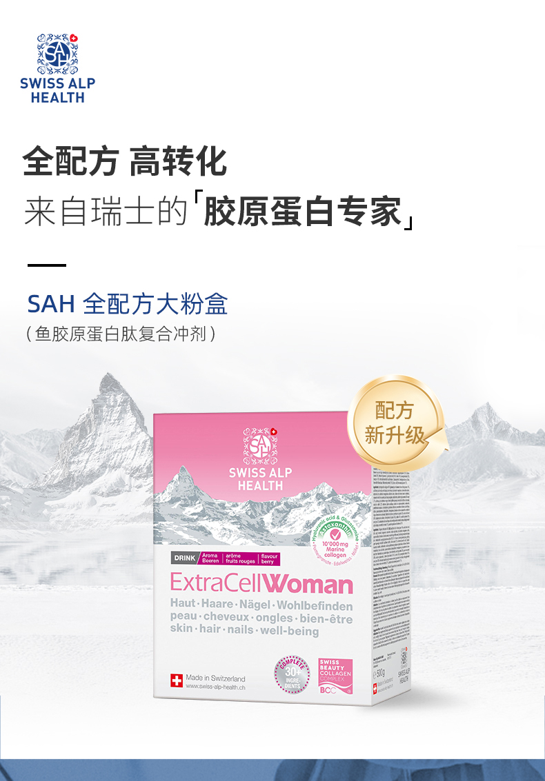 瑞士SAH鱼胶原蛋白肽大粉盒 三型胶原婴儿胶原无激素水解小分子(6盒装专用链接)