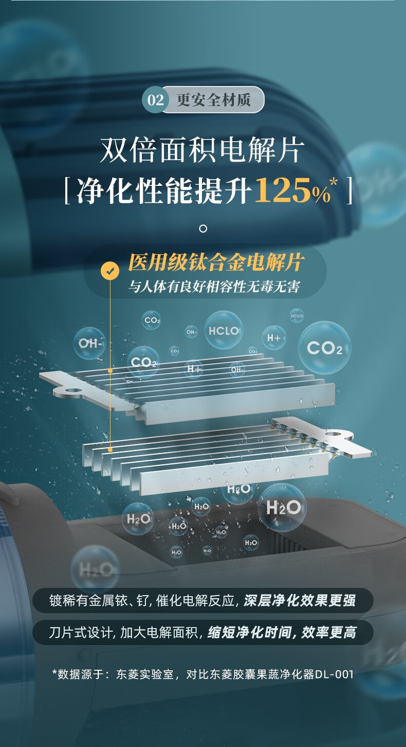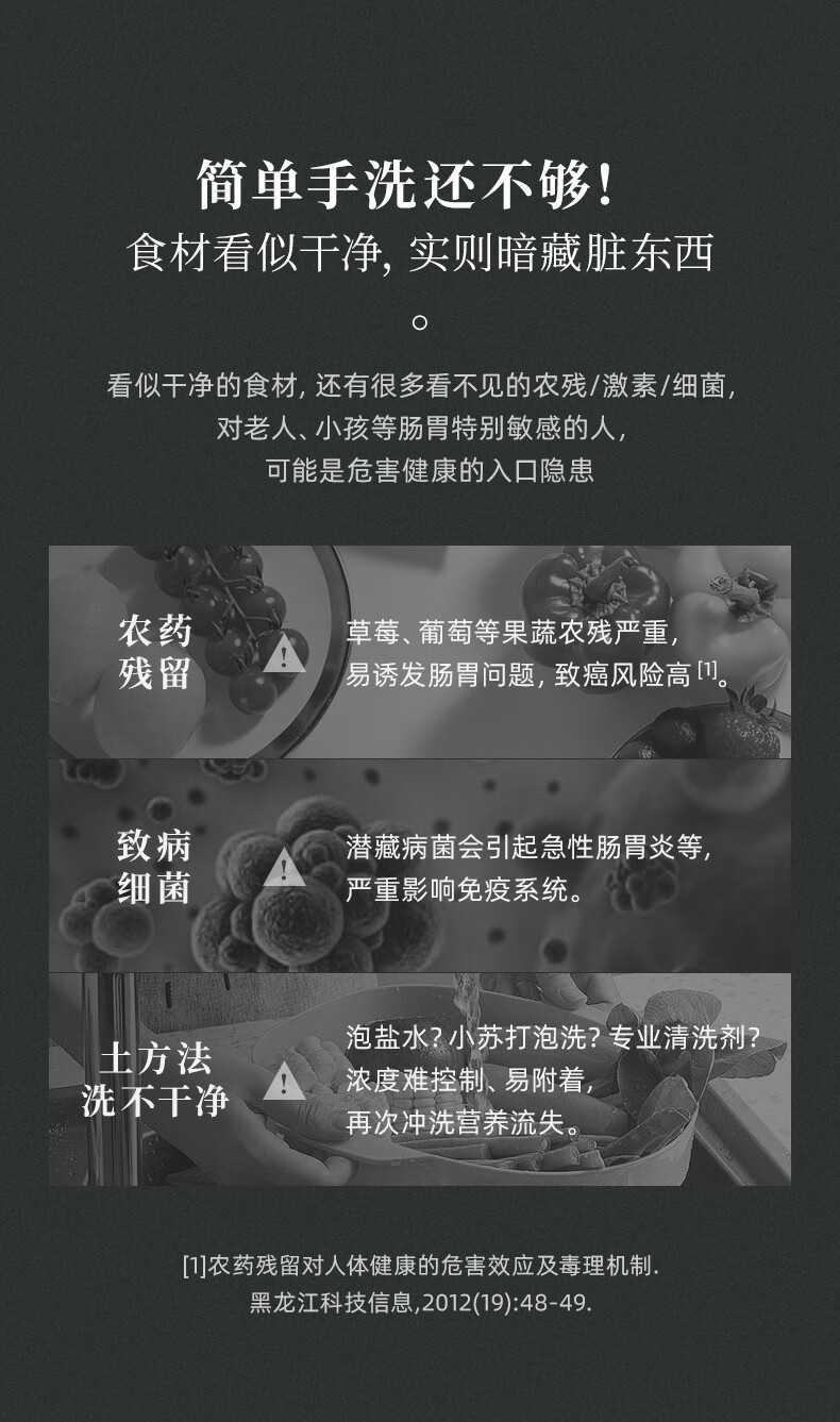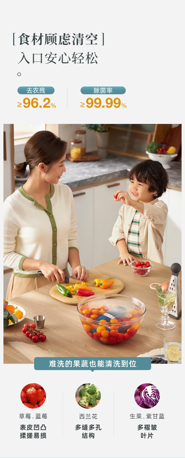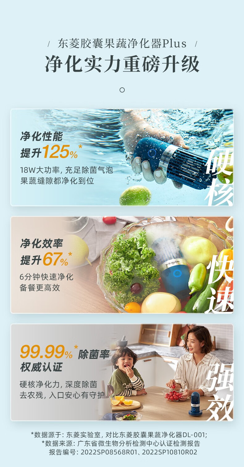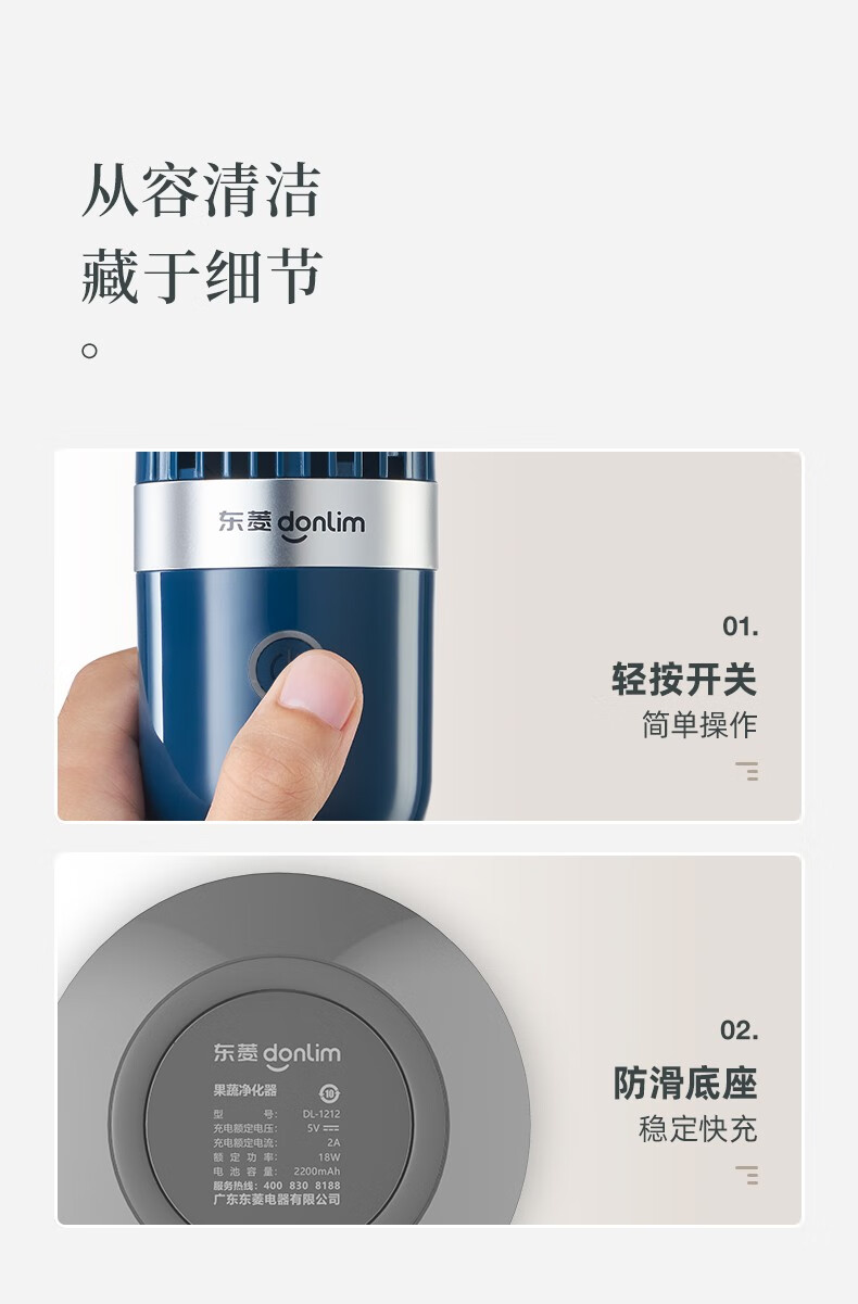 【行业Top1高效速净18W】东菱(Donlim) 胶囊果蔬清洗机升级版家用洗菜机蔬菜水果食材净化机器去农残清洗机消毒神器无线 DL-1212(PLUS升级版)