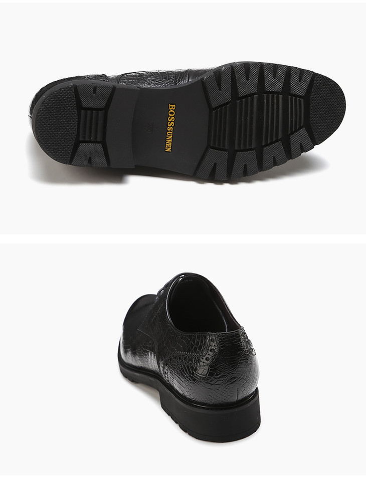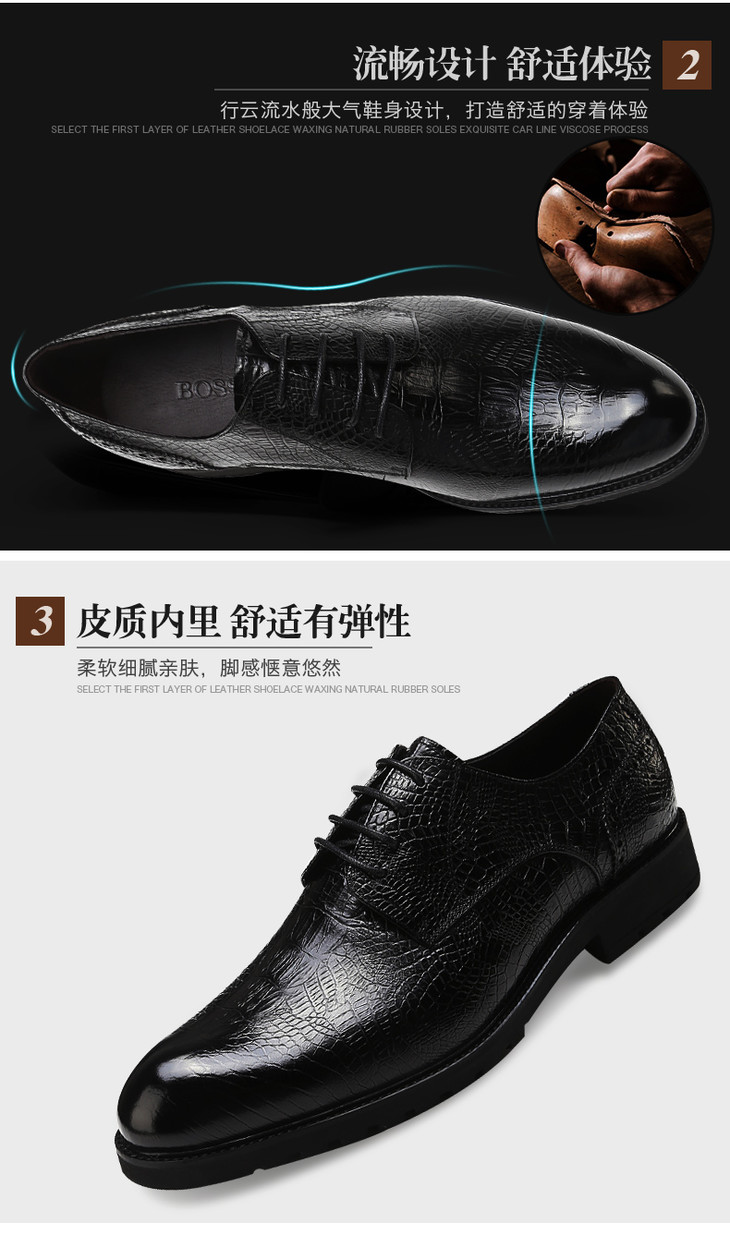 博斯绅威皮鞋夏意大利牛皮压花鳄鱼纹商务休闲男士系带尖头婚鞋子