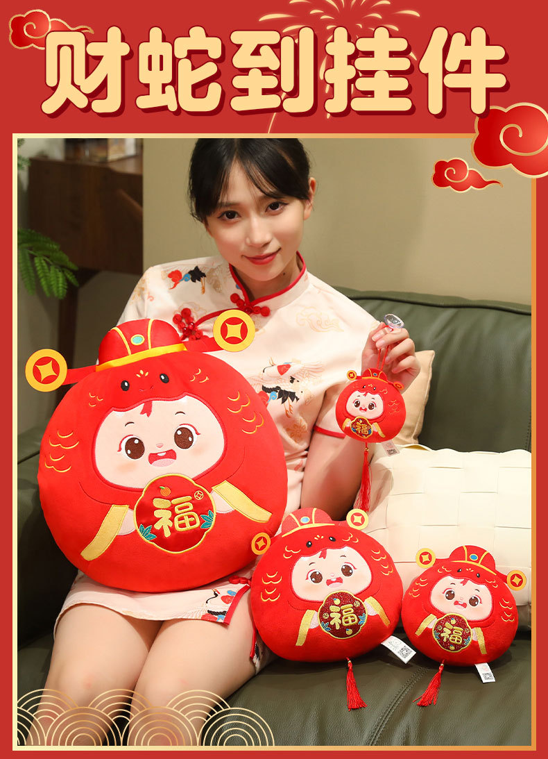 【新年吉祥物!财蛇到上线】财蛇到挂件毛绒玩具生肖蛇年吉祥物公仔玩偶圆形娃娃插手抱枕公司礼品。ry