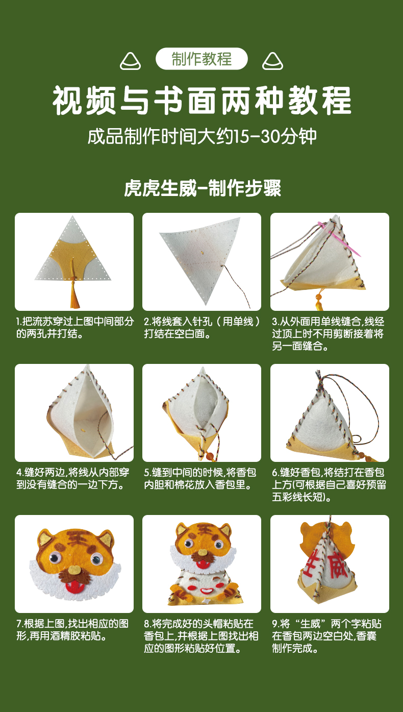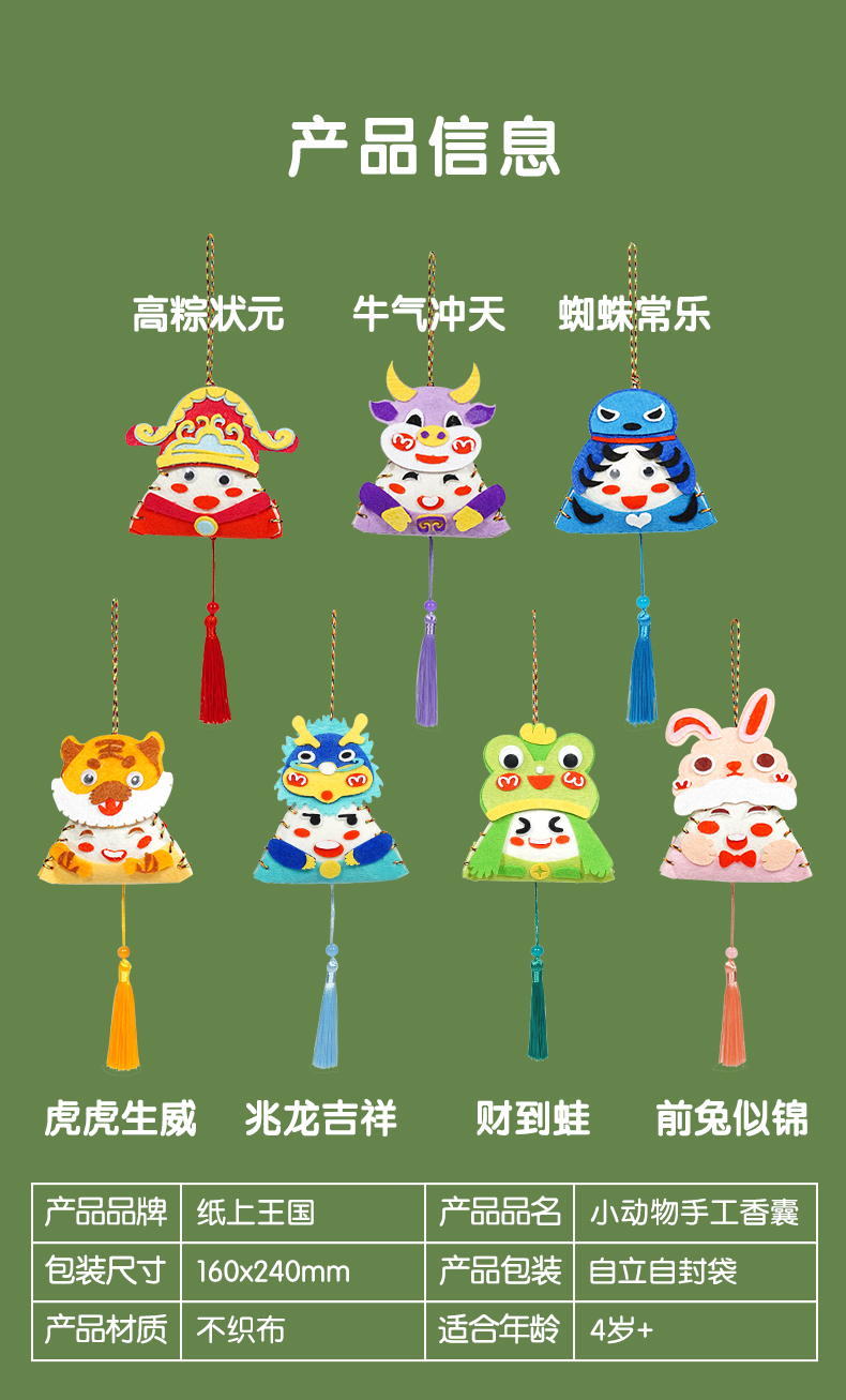 【59元/5个端午香囊】Harpaper端午节手工DIY艾草香囊挂件 粽子香包 迎祥纳福好平安-虎/龙/兔/牛/蜘蛛/青蛙/状元