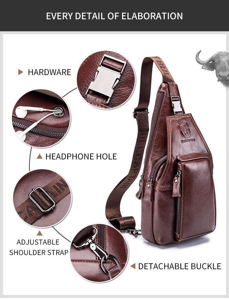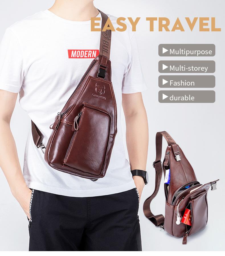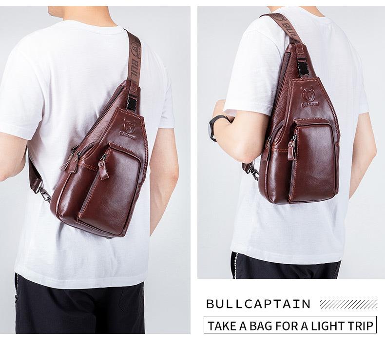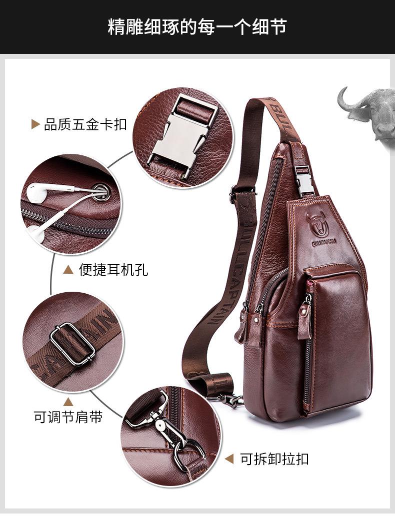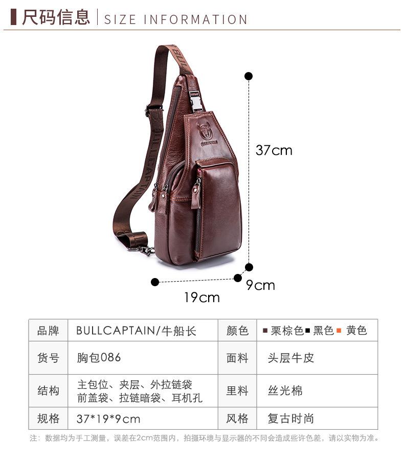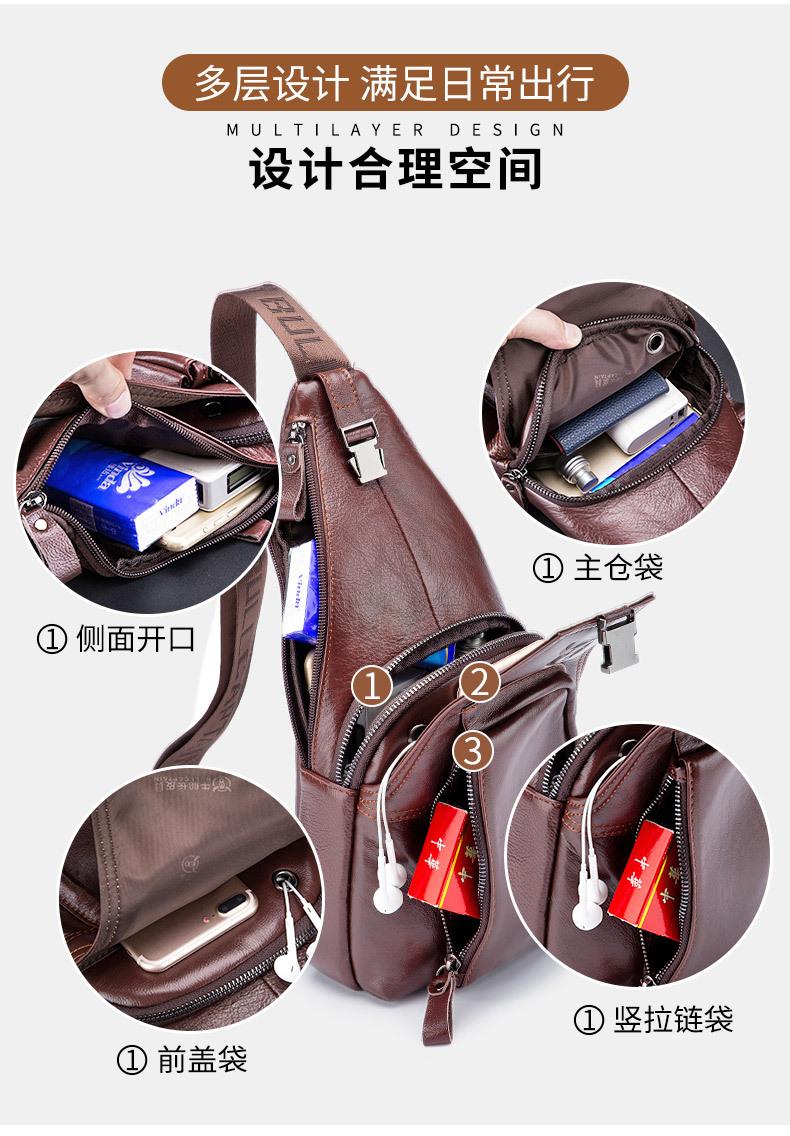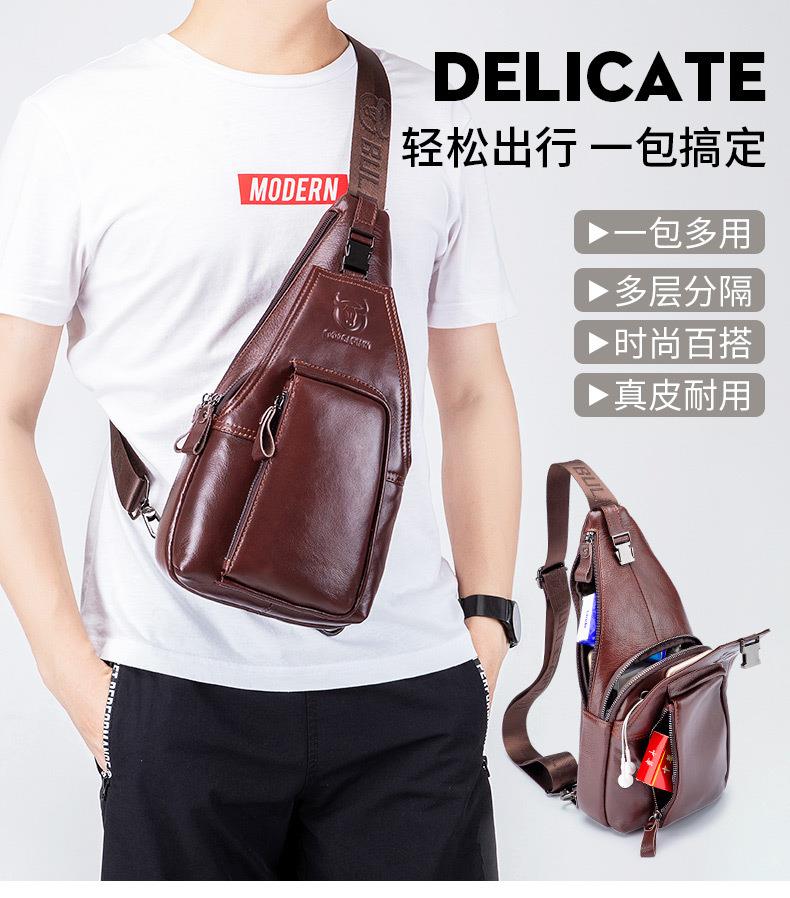 牛船长真皮胸包男包单肩斜挎休闲时尚潮流多功能运动小背胸前包