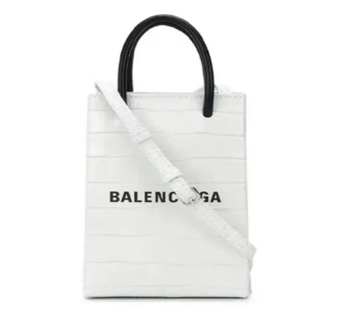 Balenciaga巴黎世家 Shopping锡类 鳄鱼纹Logo 牛皮 托特包Tote包购物袋手机包挎包斜挎手提包 小号 男女同款情侣款 白色
