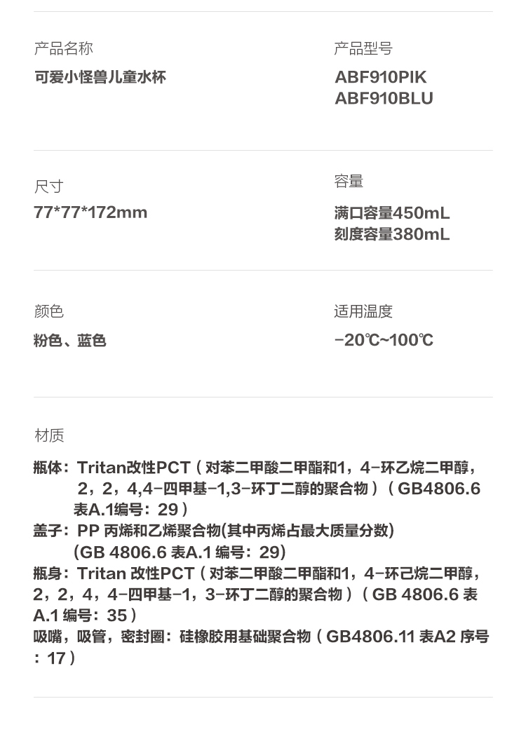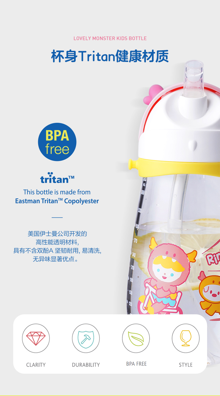 乐扣乐扣可爱小怪兽儿童水杯450ml ABF910