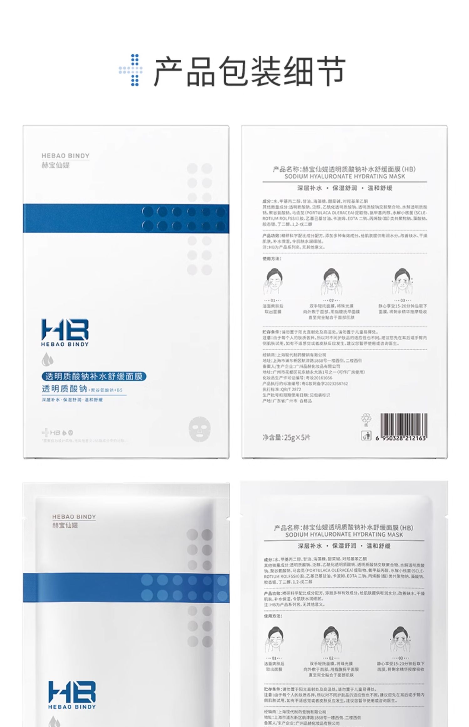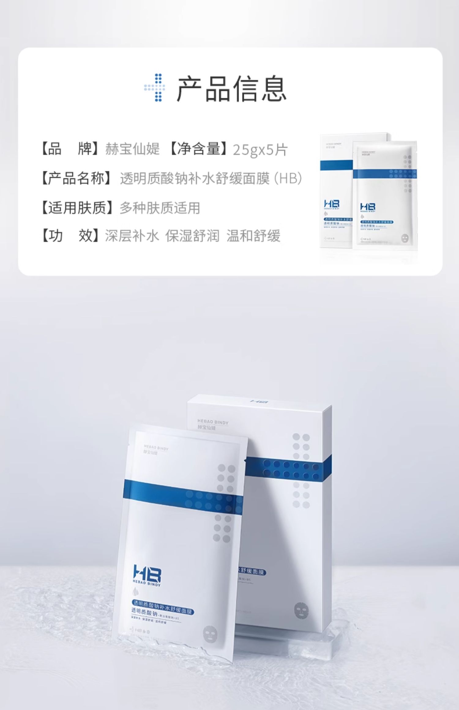 【补水面膜 | 29.9任选2件】 赫宝仙媞透明质酸钠补水舒缓面膜(HB) 25g 单片装*10片(浅蓝)