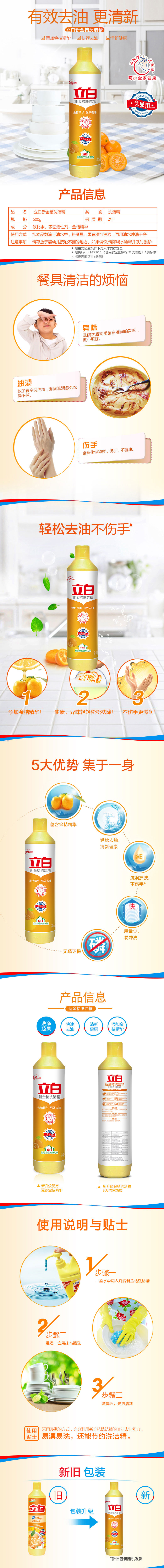 立白 新金桔洗洁精500g*6瓶去油渍不伤手果蔬餐具通用小瓶洗洁精