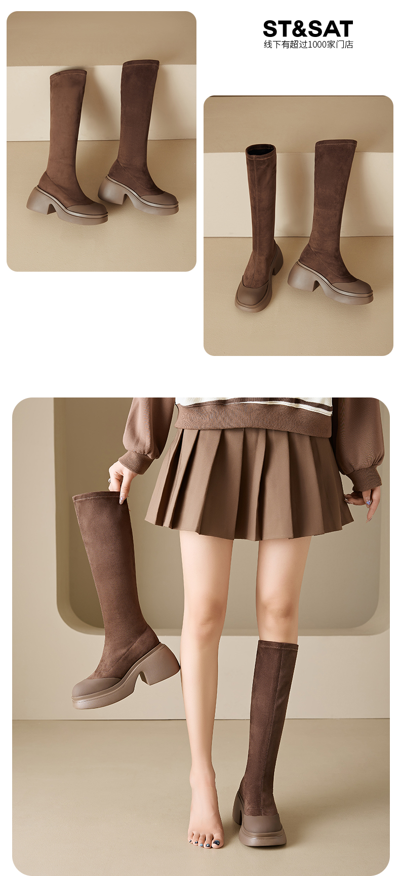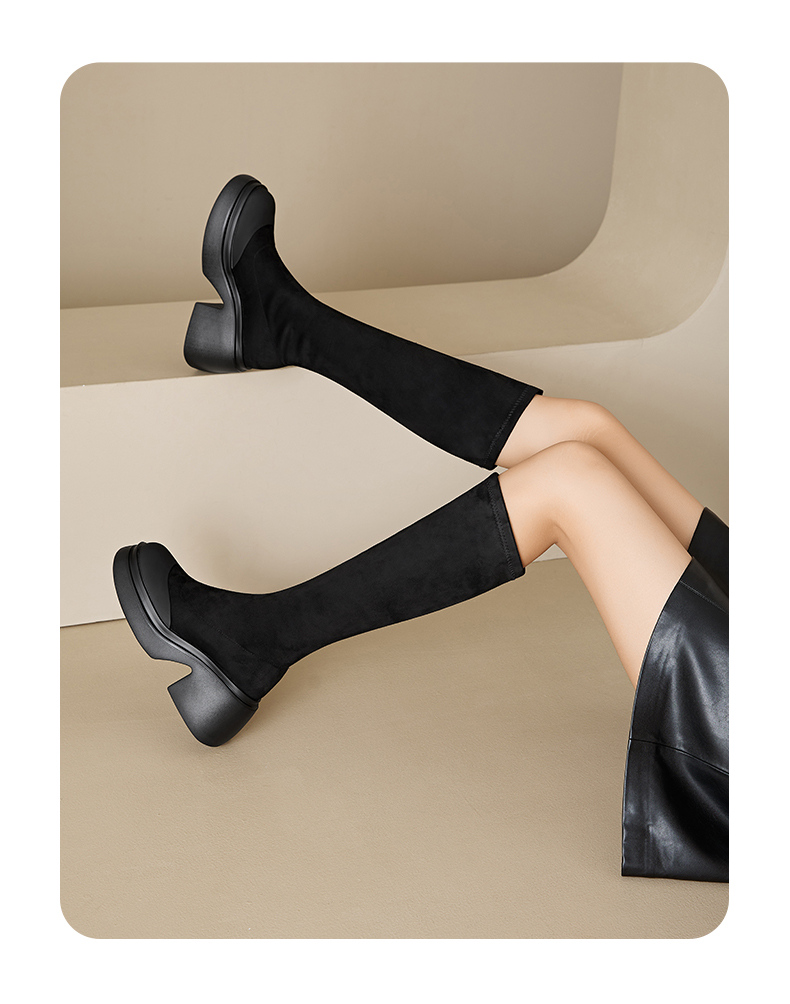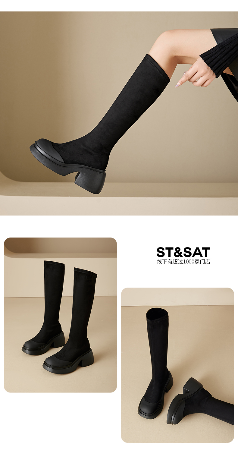 星期六质感绒面时髦百搭增高瘦瘦靴SS341170SG