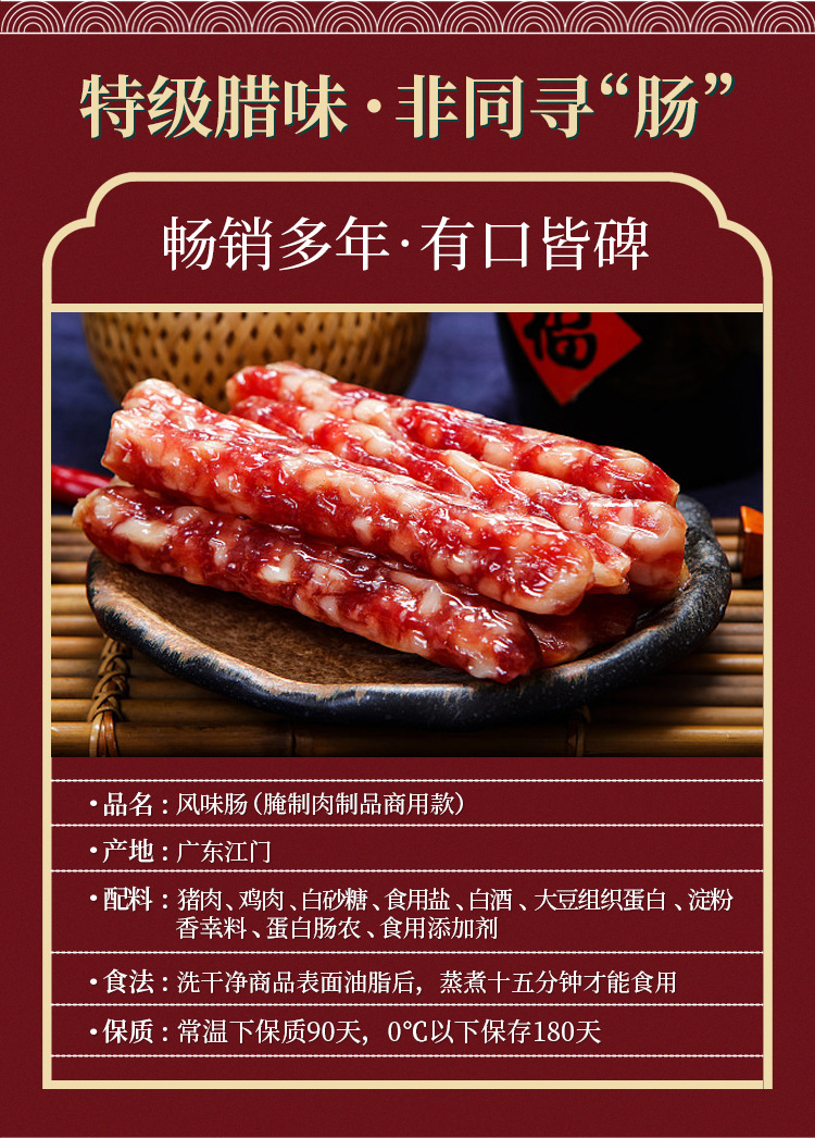 【腊香浓郁 肥瘦分明!广式纯肉腊肠】醇正风味 口感丰富 香肠商用特产麻辣广味腊味四川腊肉
