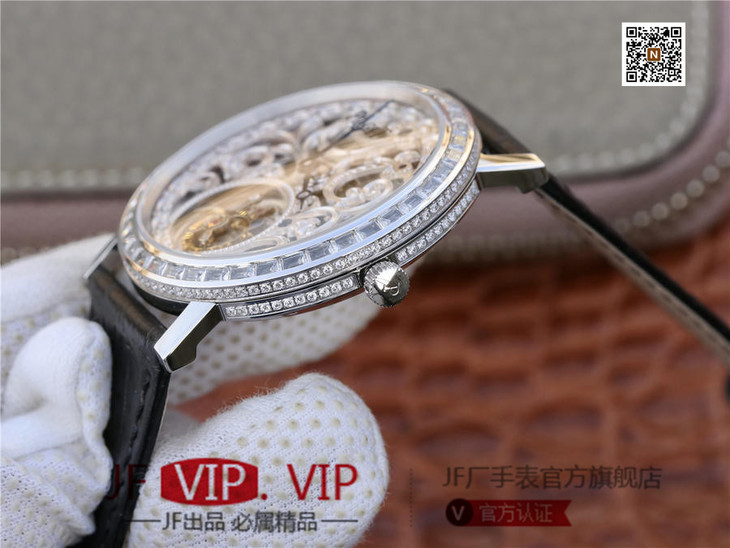 BBR伯爵高级制表目标。突破超溥陀飞轮极限,让梦想变成闪耀现实。这款腕表搭配海鸥8000K镂空陀飞轮机芯.表径:AItipIano40mm,表壳厚度仅为8.6毫米,完美体现了伯爵突破创新的精神和对极致纤薄的不懈追求,为制表工艺又添荣耀一笔。这款极其别致腕表《表壳与机芯融合为一.》成为了最纤薄的高级珠宝陀飞轮。此外,为了进一步凸显出机芯工艺要求,每一枚机芯夹板都是手工雕刻达到了精美绝伦的新巅峰。这款腕表独特及富有魅力的设计,适合男女搭配,是伯爵展现完美工艺升华之作。
