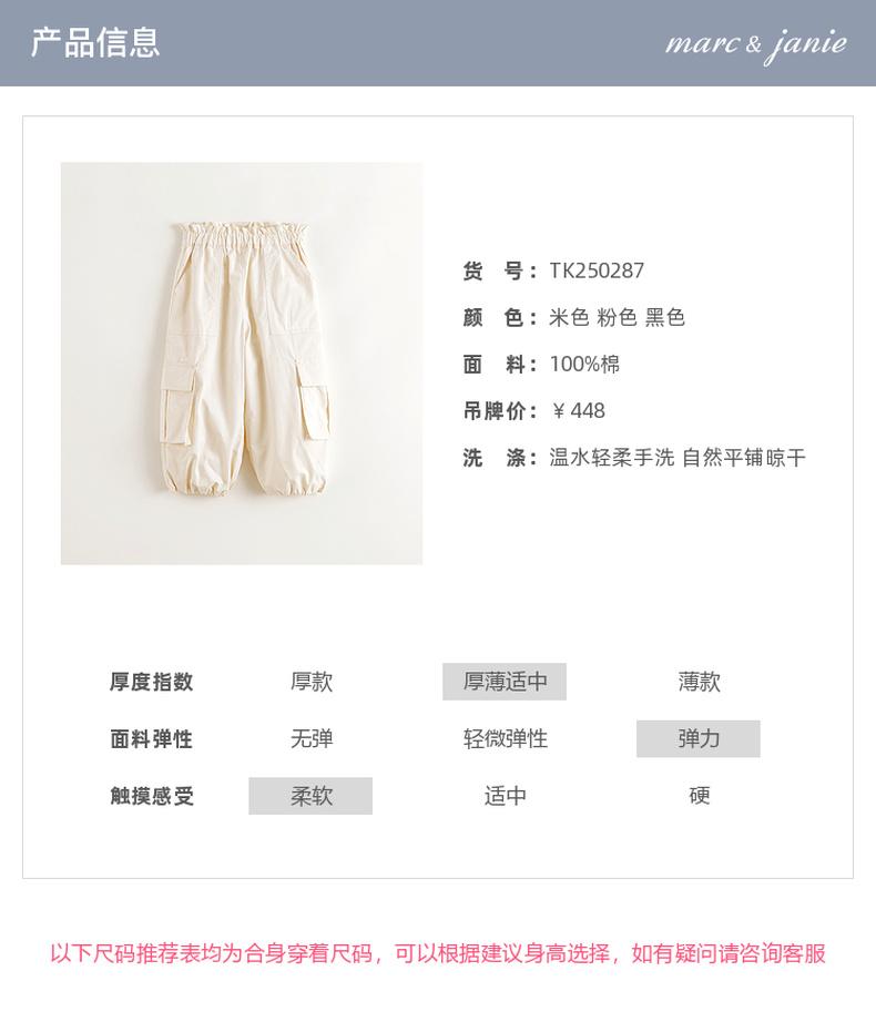 马克珍妮女童匹马棉花苞工装裤儿童裤子休闲裤2025春装新款250287