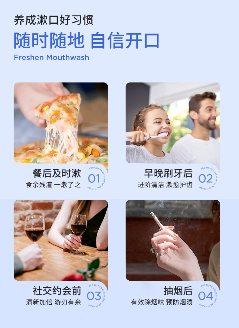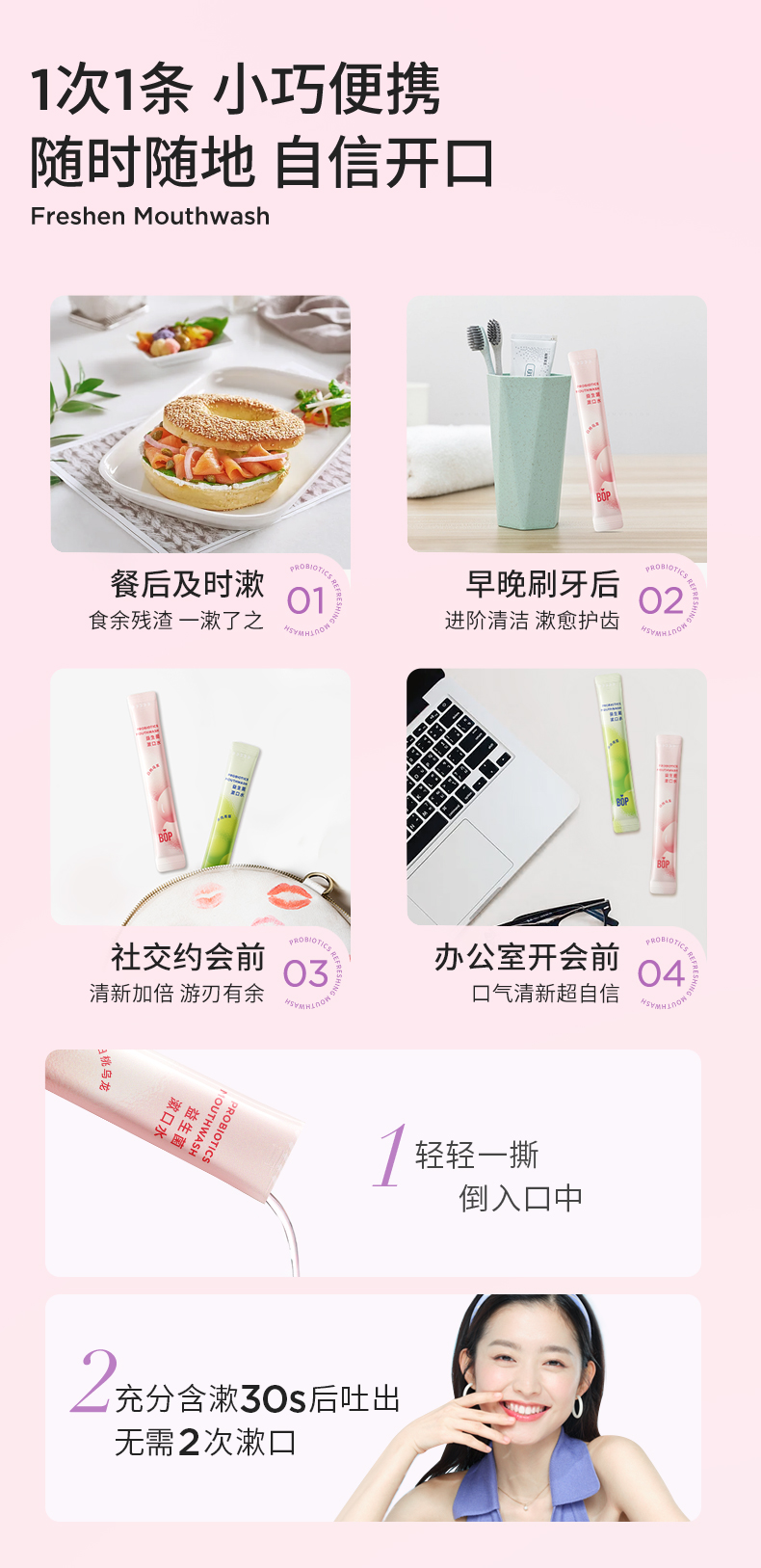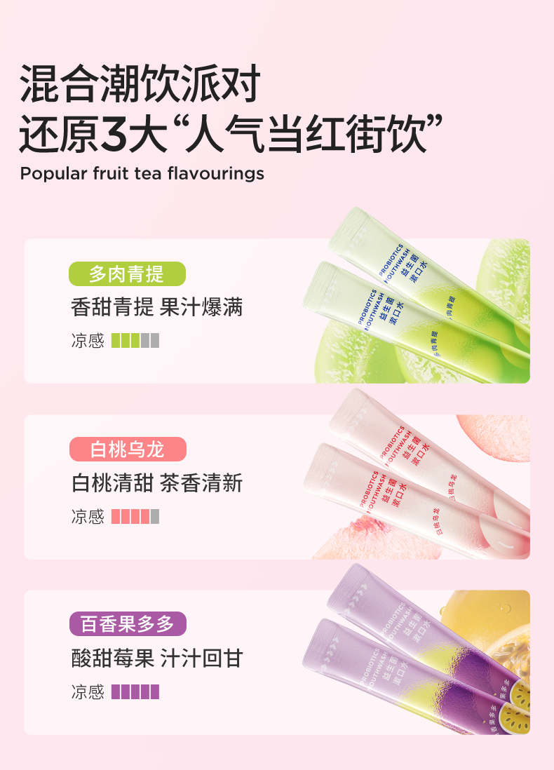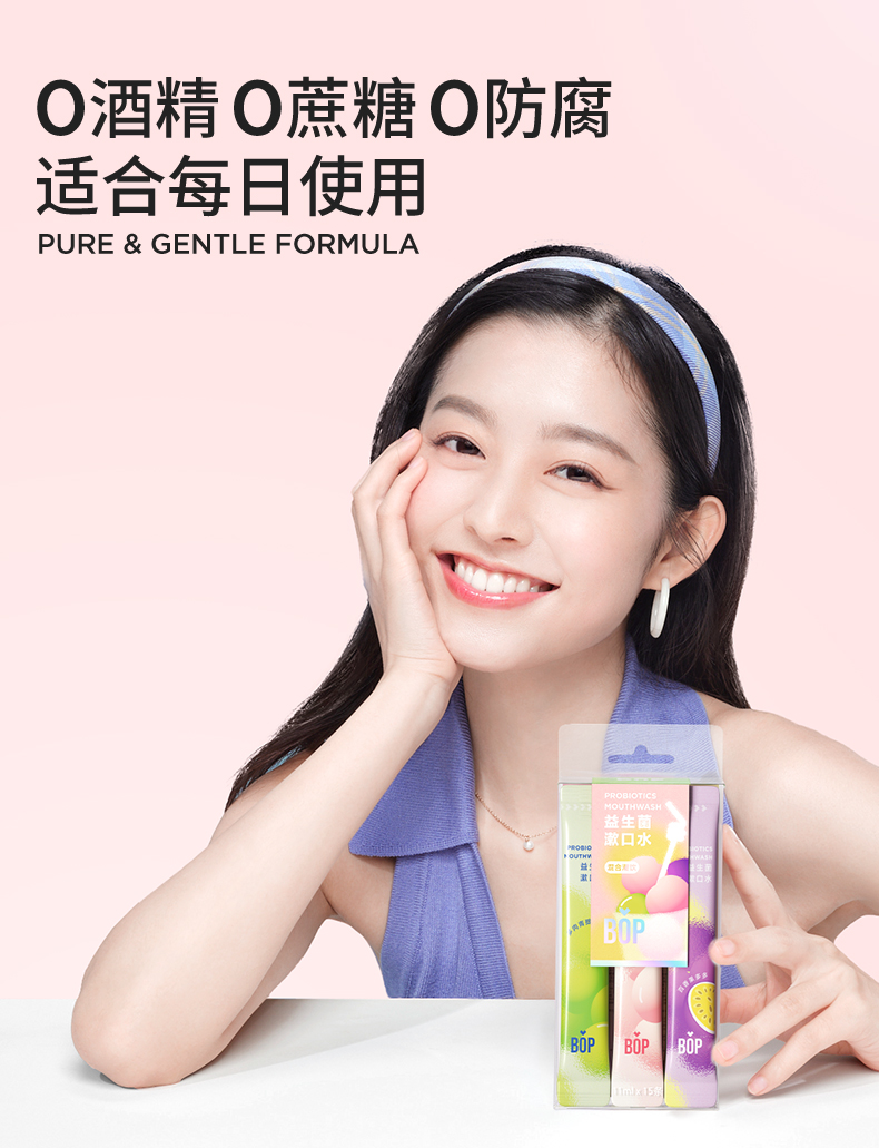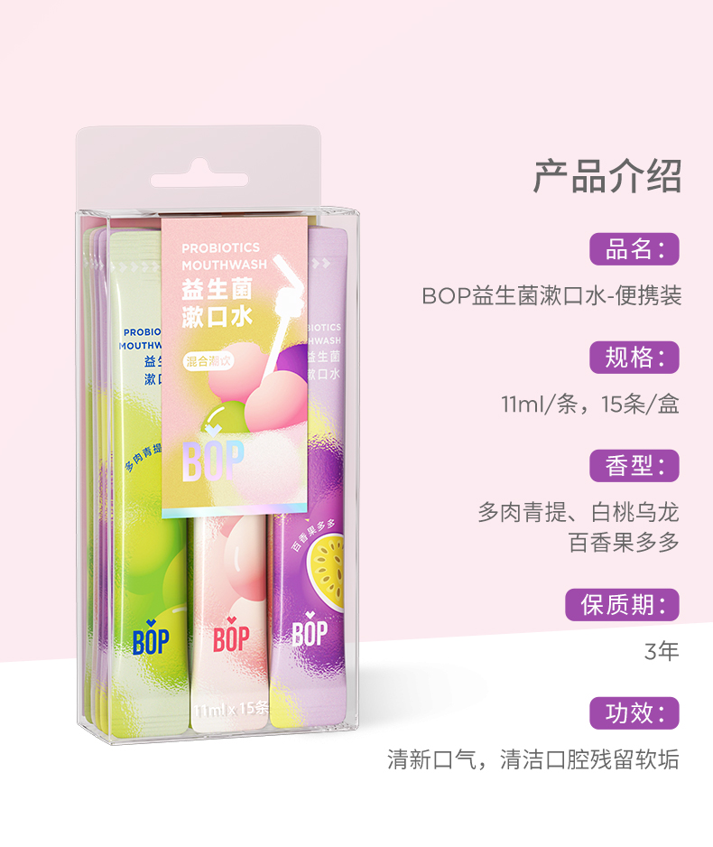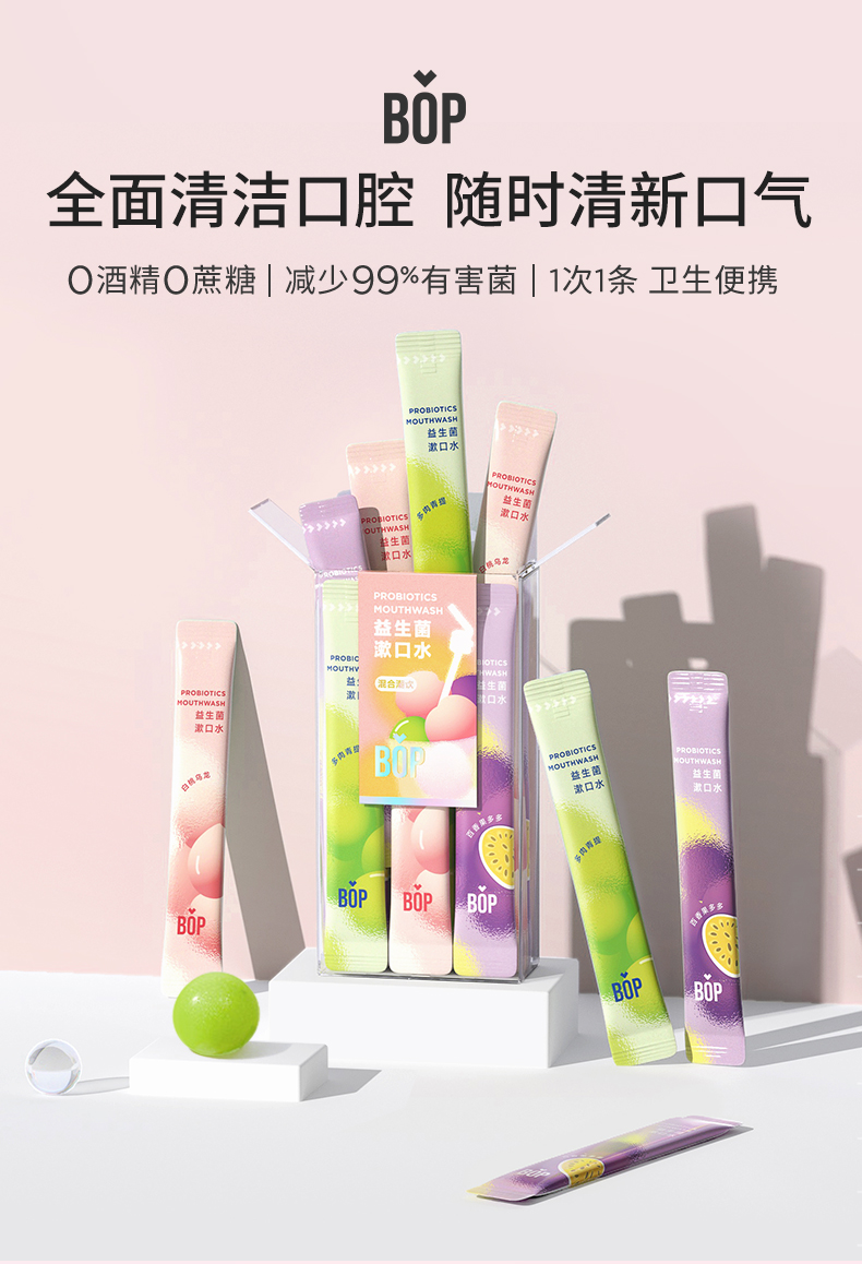 波普专研(bop)益生菌条装混合果味漱口水